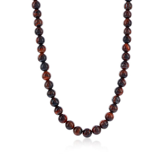 Stainless Steel, 8mm Bead Necklace - Red Tiger Eye