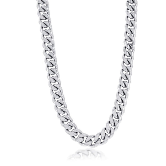 Stainless Steel 10mm Two-Tone Cuban Chain Necklace - Silver & Black