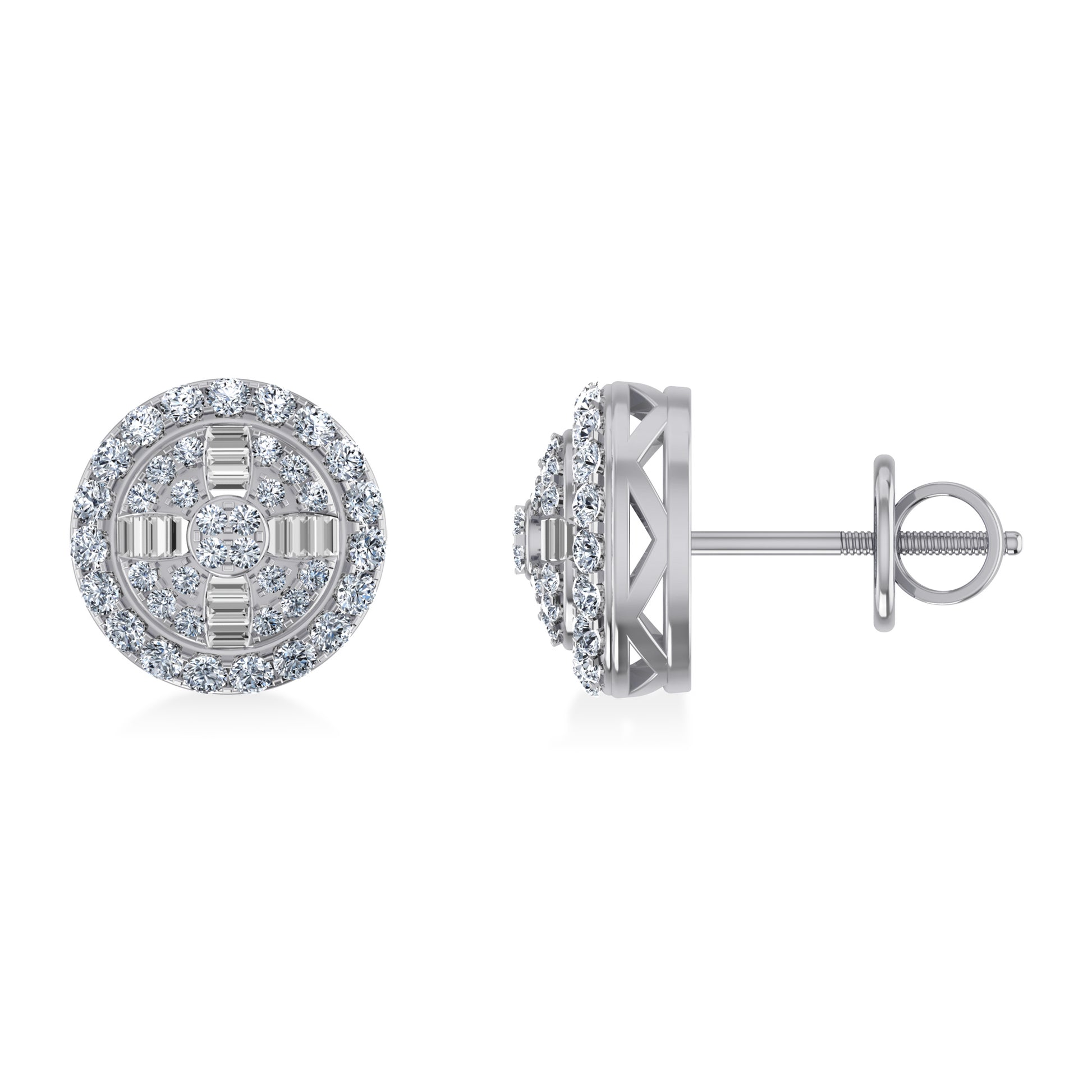 10K White Gold Round Baguette Diamond Round Shape Stud Earrings 1/3 Cttw