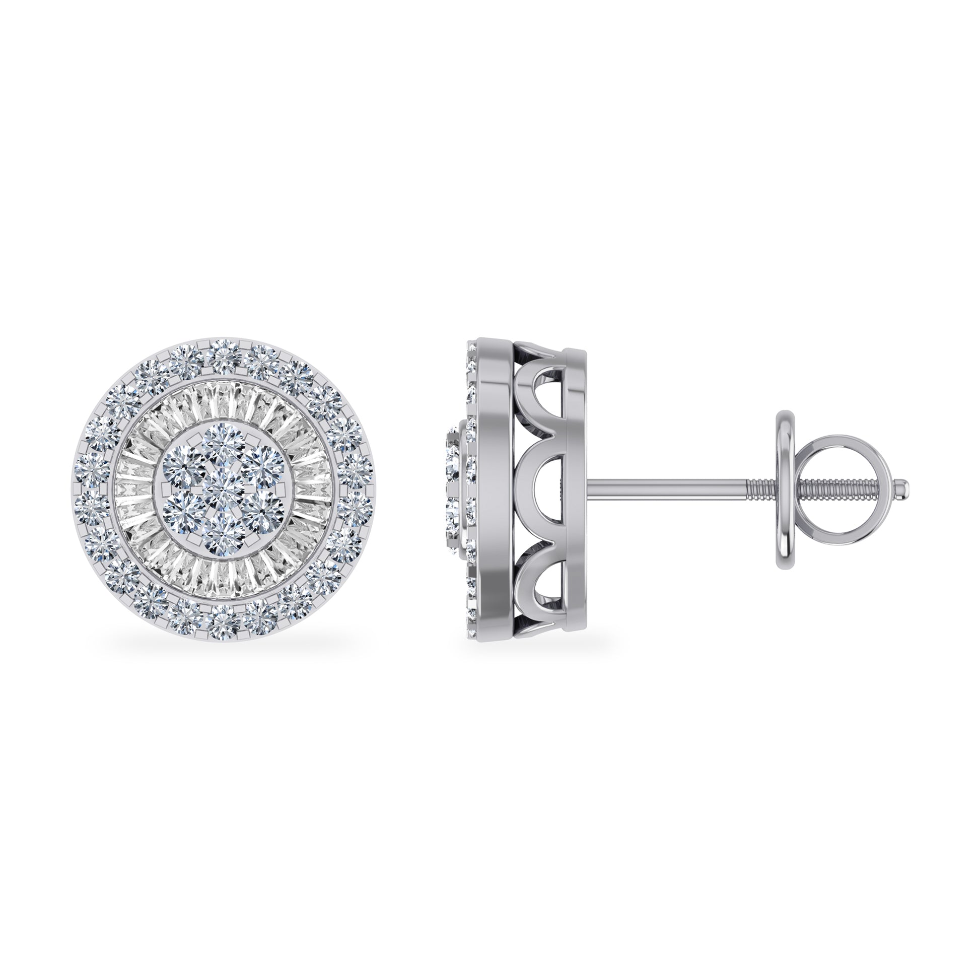 10K White Gold Round Diamond Cluster Round Shape Stud Earrings 1/2 Cttw