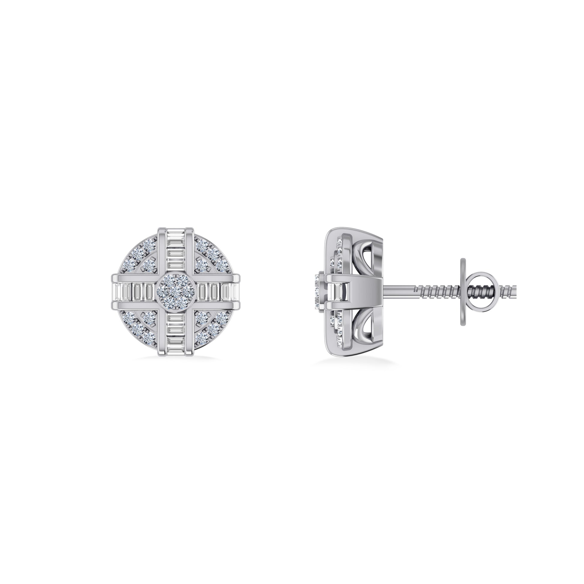 10K White Gold Round Diamond Designer Mens Stud Earring 1/4 Cttw