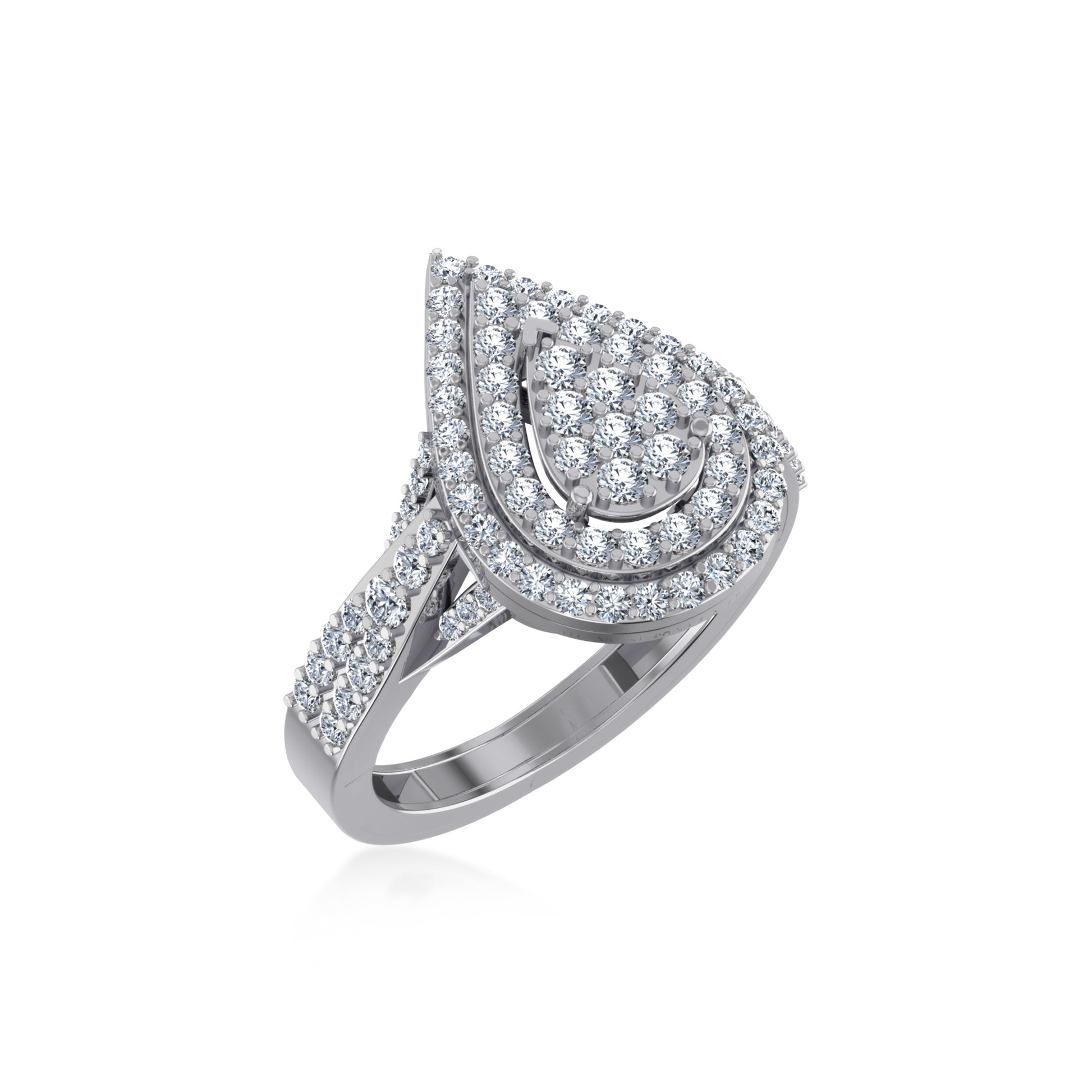 10K White Gold Round Diamond Pear Shape Sz 7 Head Ladies Ring 1 Cttw