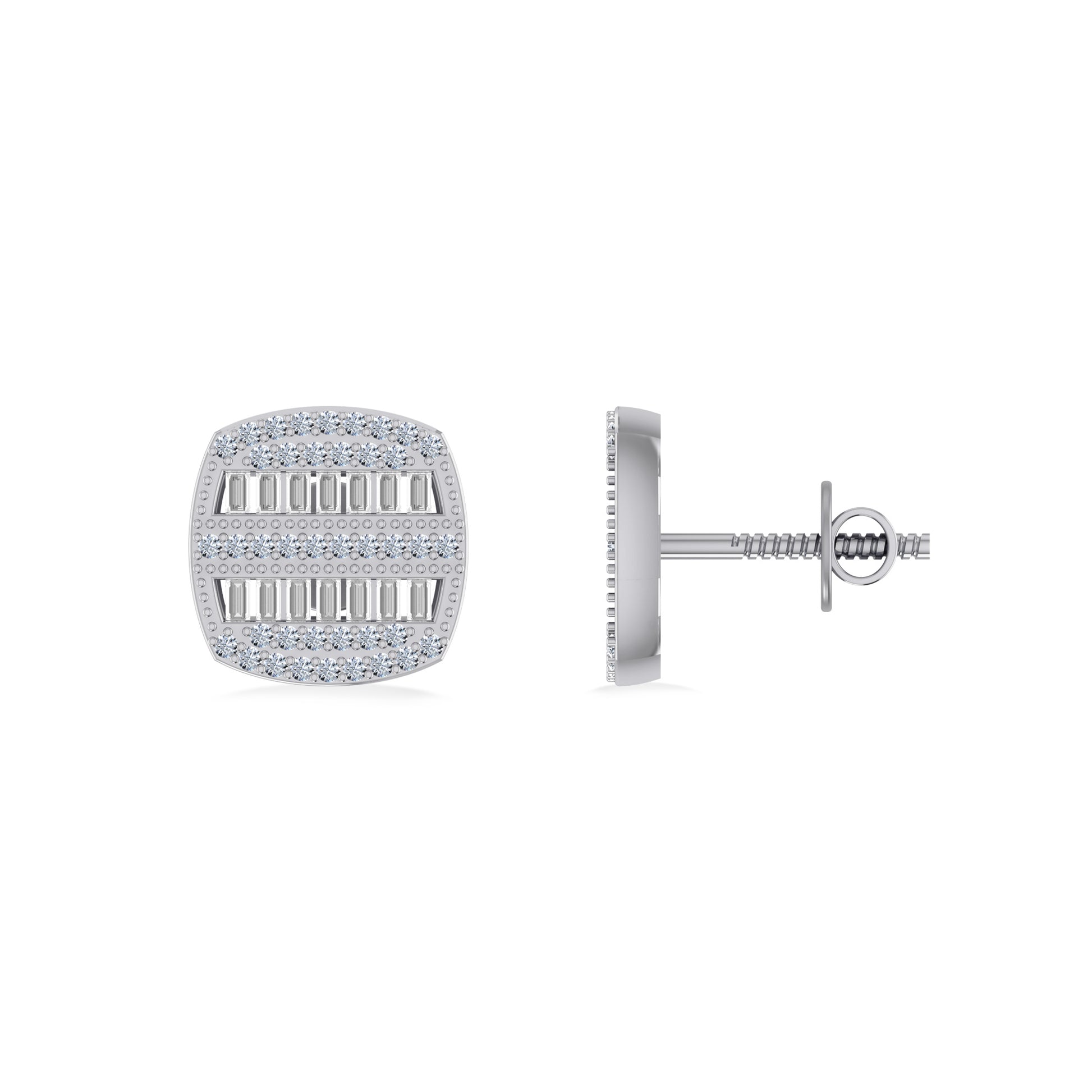 10K White Gold Round Diamond Square Shape Designer Mens Stud Earring 1/3 Cttw