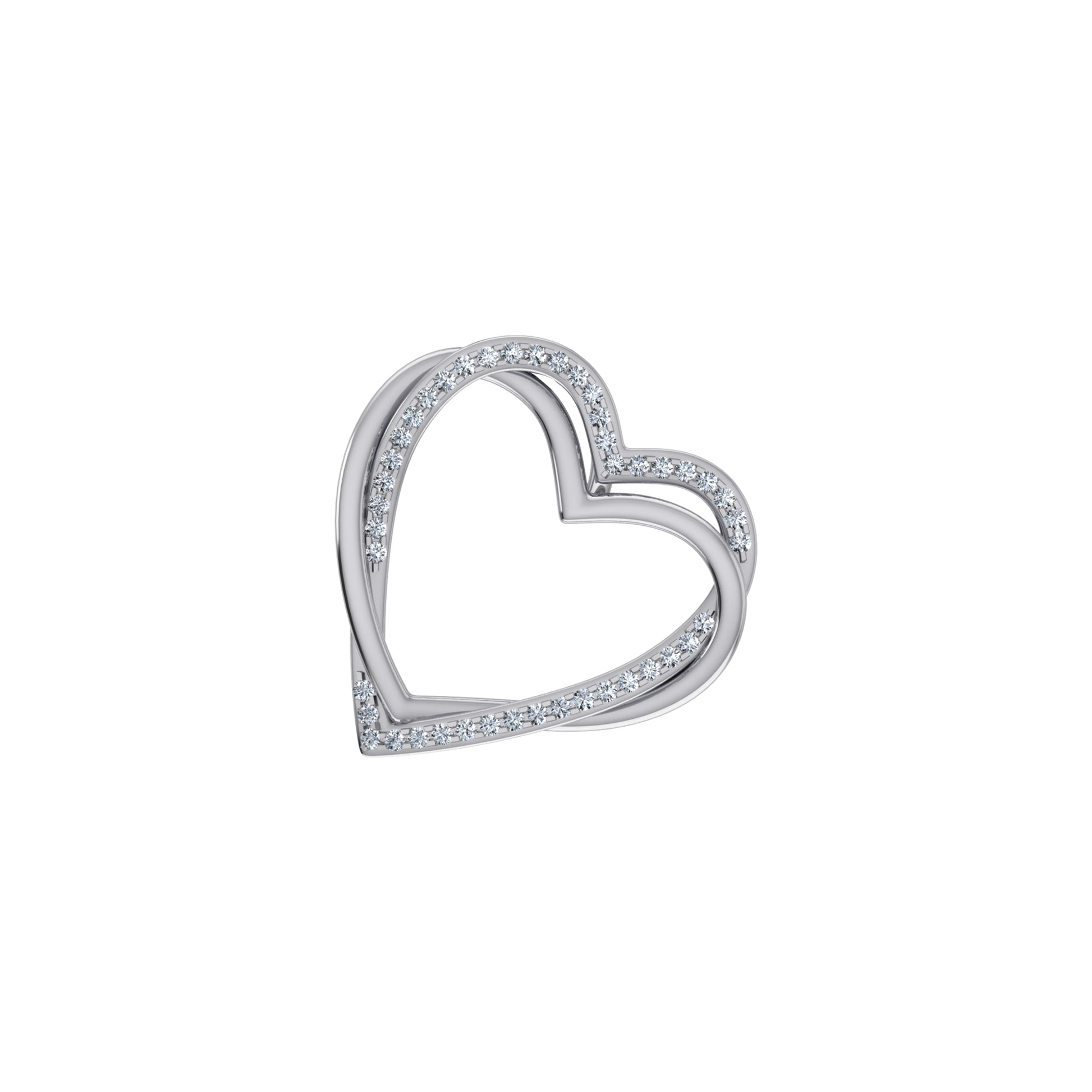 10K White Gold Round Diamond Womens Double Heart Pendant 1/10 Cttw