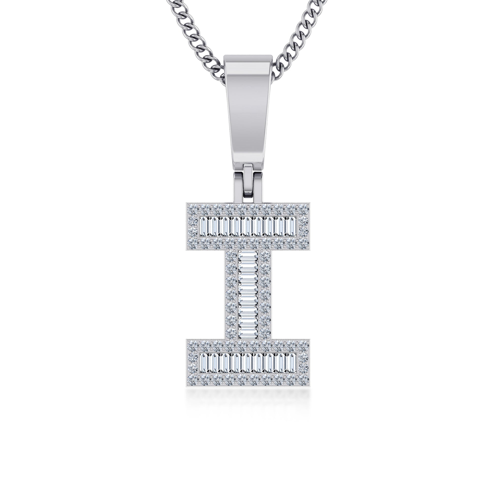 10K White Gold Tw Baguette Initial I Pendant 1/3 Cttw
