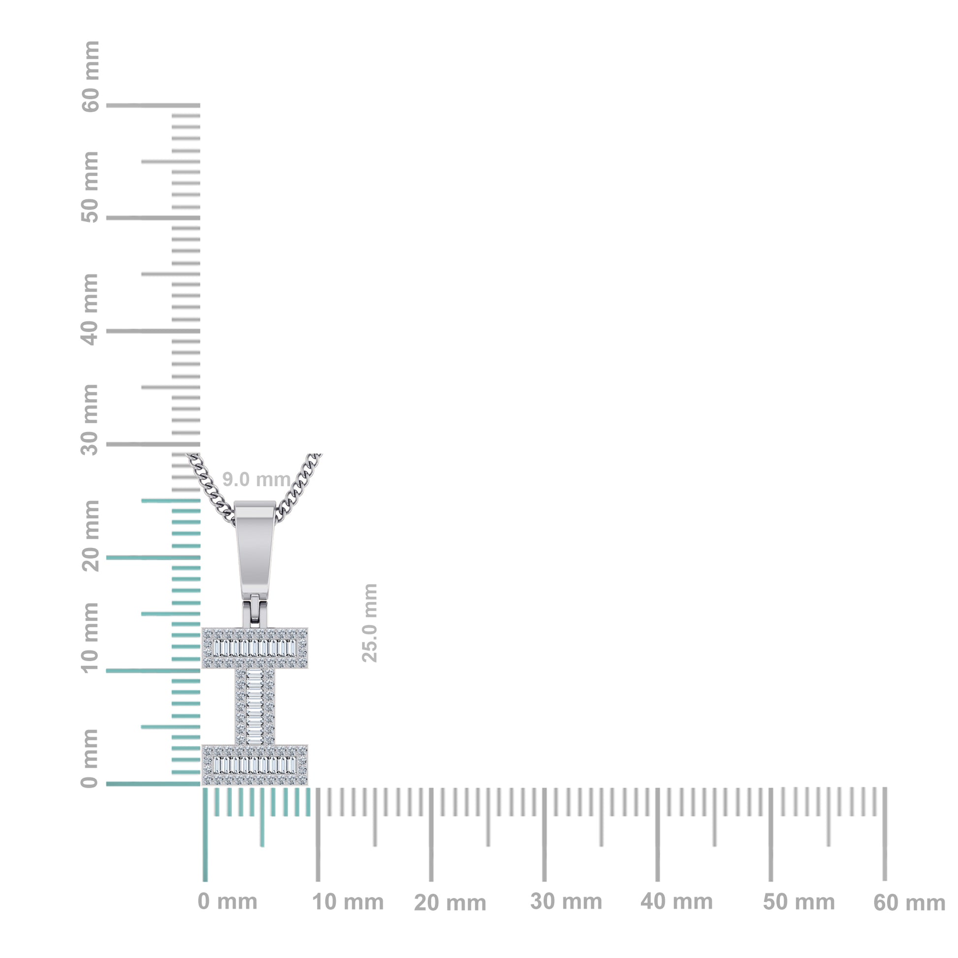 10K White Gold Tw Baguette Initial I Pendant 1/3 Cttw
