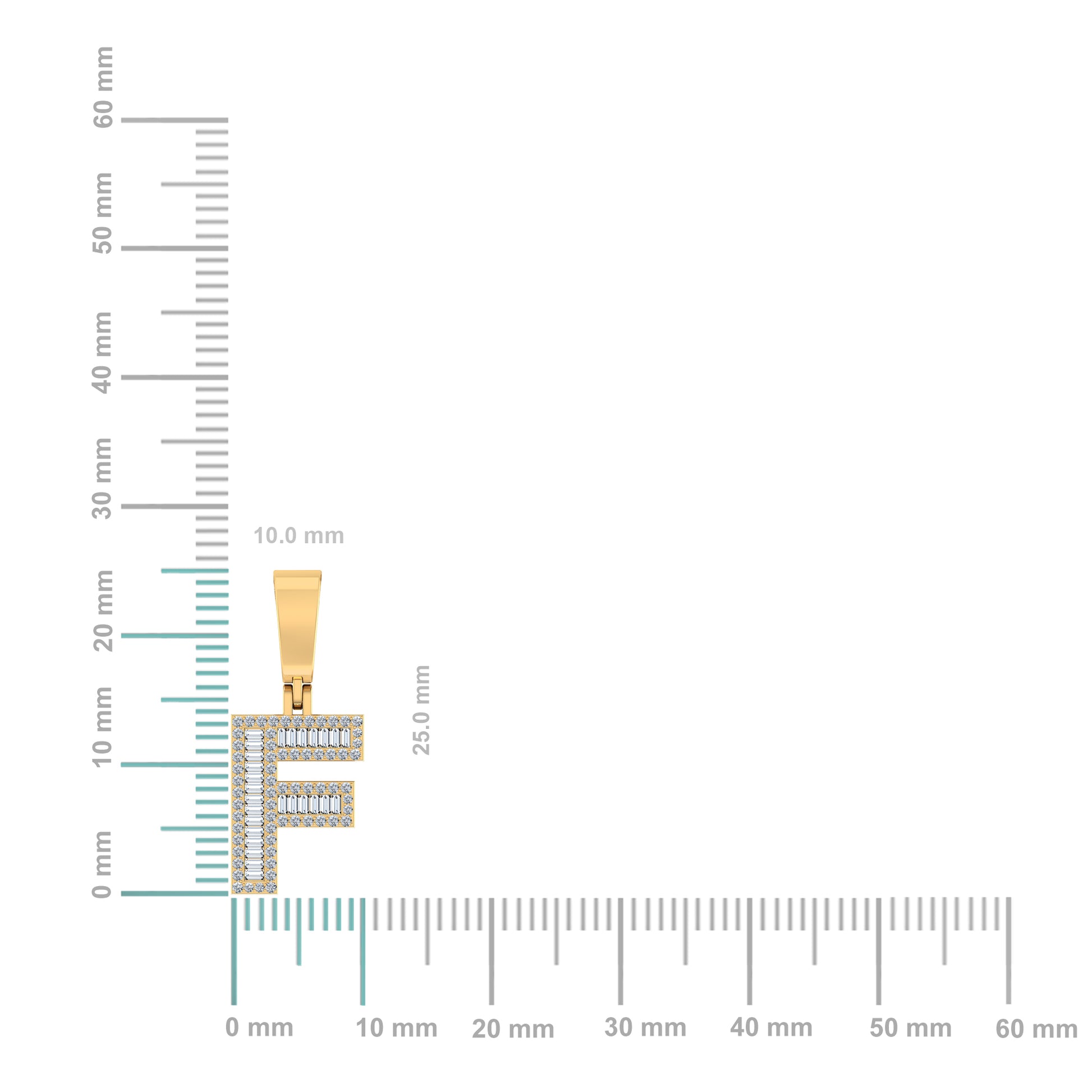 10K Yellow Gold Baguette Diamond Initial F Letter Pendant 3/8 Cttw