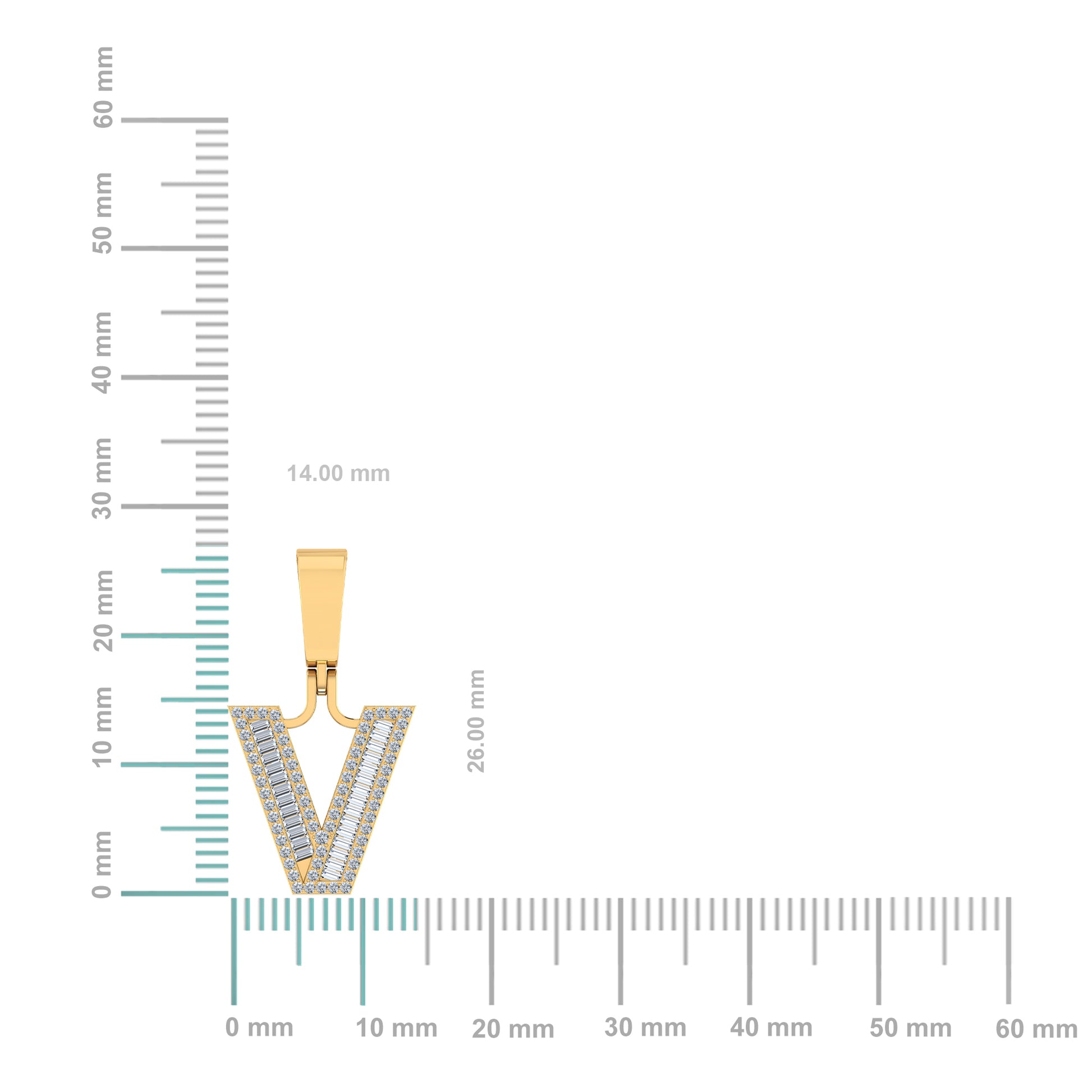 10K Yellow Gold Baguette Diamond Initial V Letter Pendant 1/3 Cttw