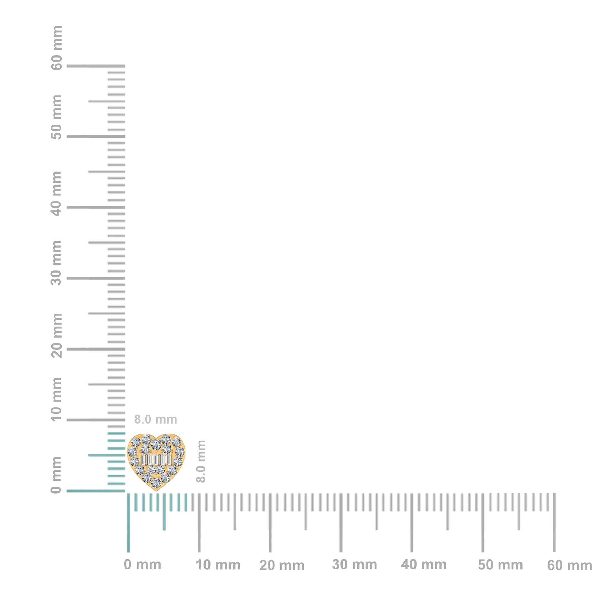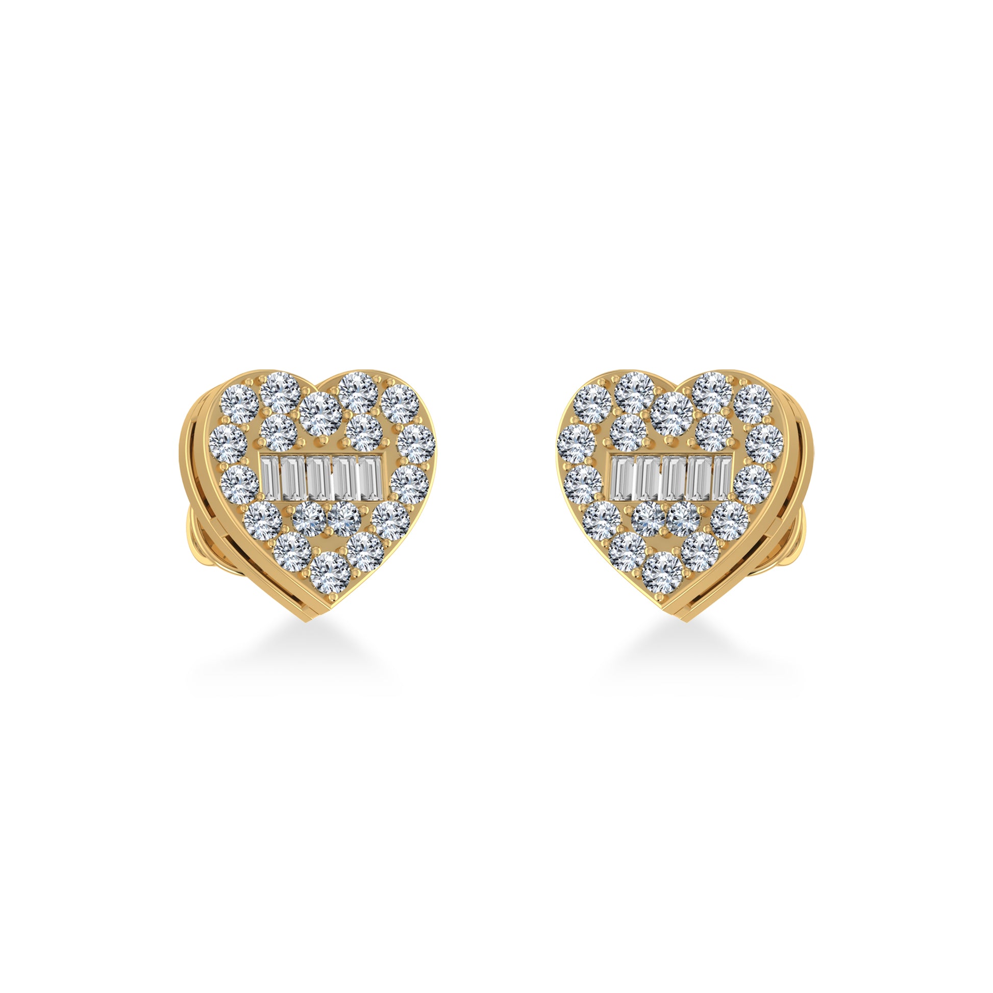 10K Yellow Gold Round Baguette Diamond Heart Shape Cluster Stud Earring 3/8 Cttw