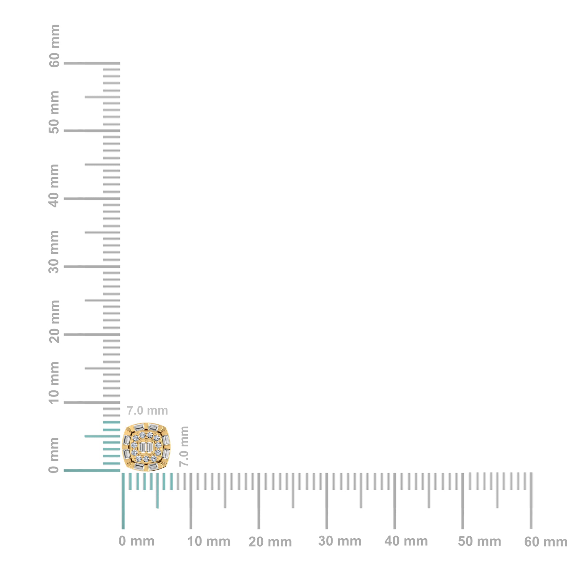 10K Yellow Gold Round Baguette Diamond Square Designer Earring 1/4 Cttw