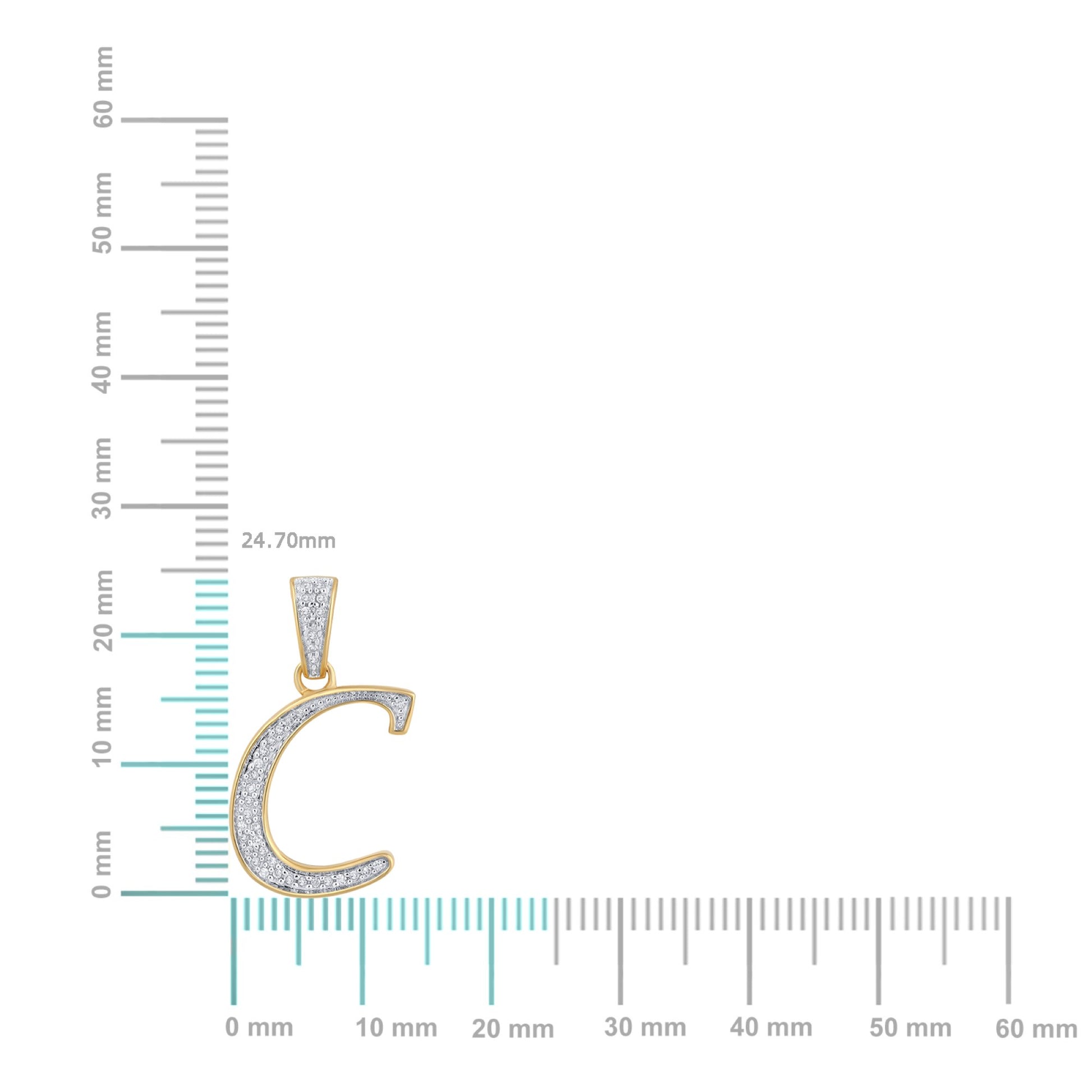 10K Yellow Gold Round Diamond C Letter Initial Pendant 1/10 Cttw