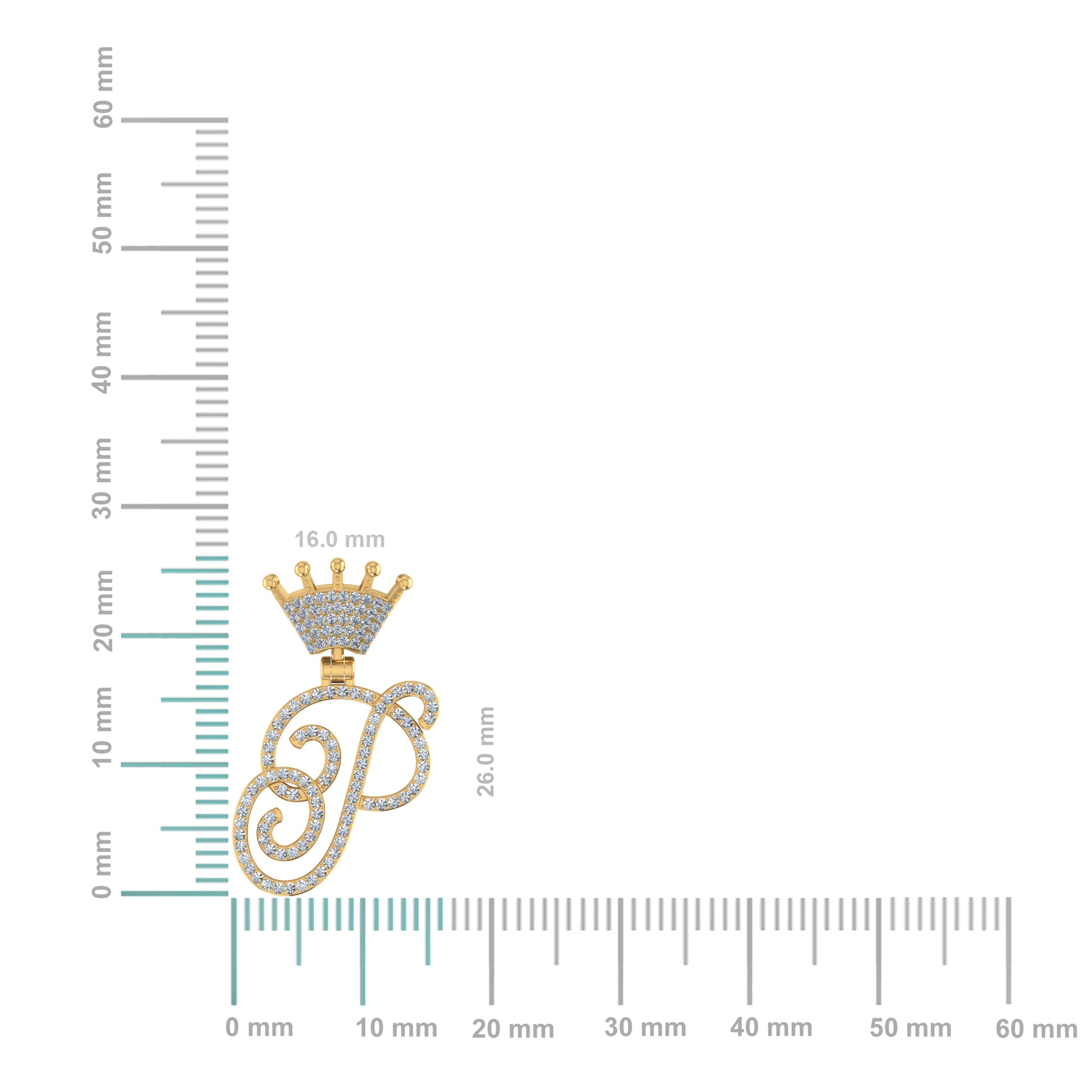 10K Yellow Gold Round Diamond Crown P Letter Initial Pendant 1/4 Cttw