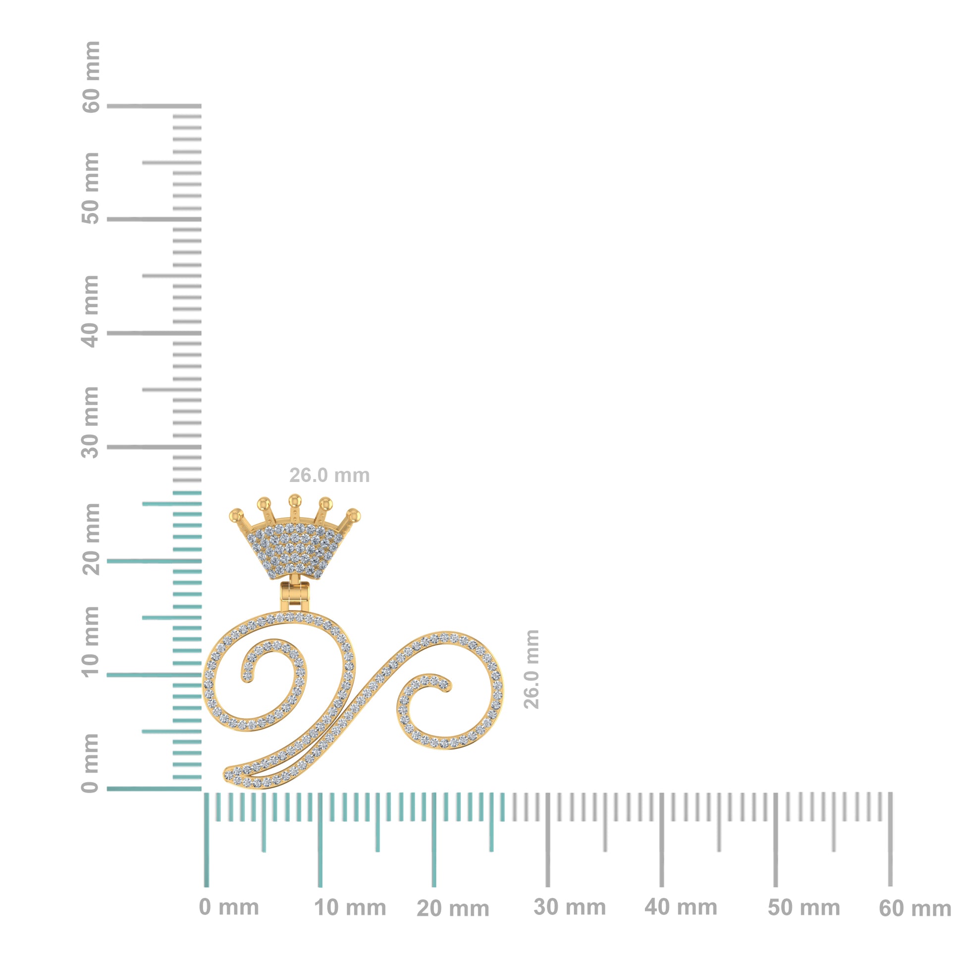 10K Yellow Gold Round Diamond Crown V Letter Initial Pendant 1/4 Cttw