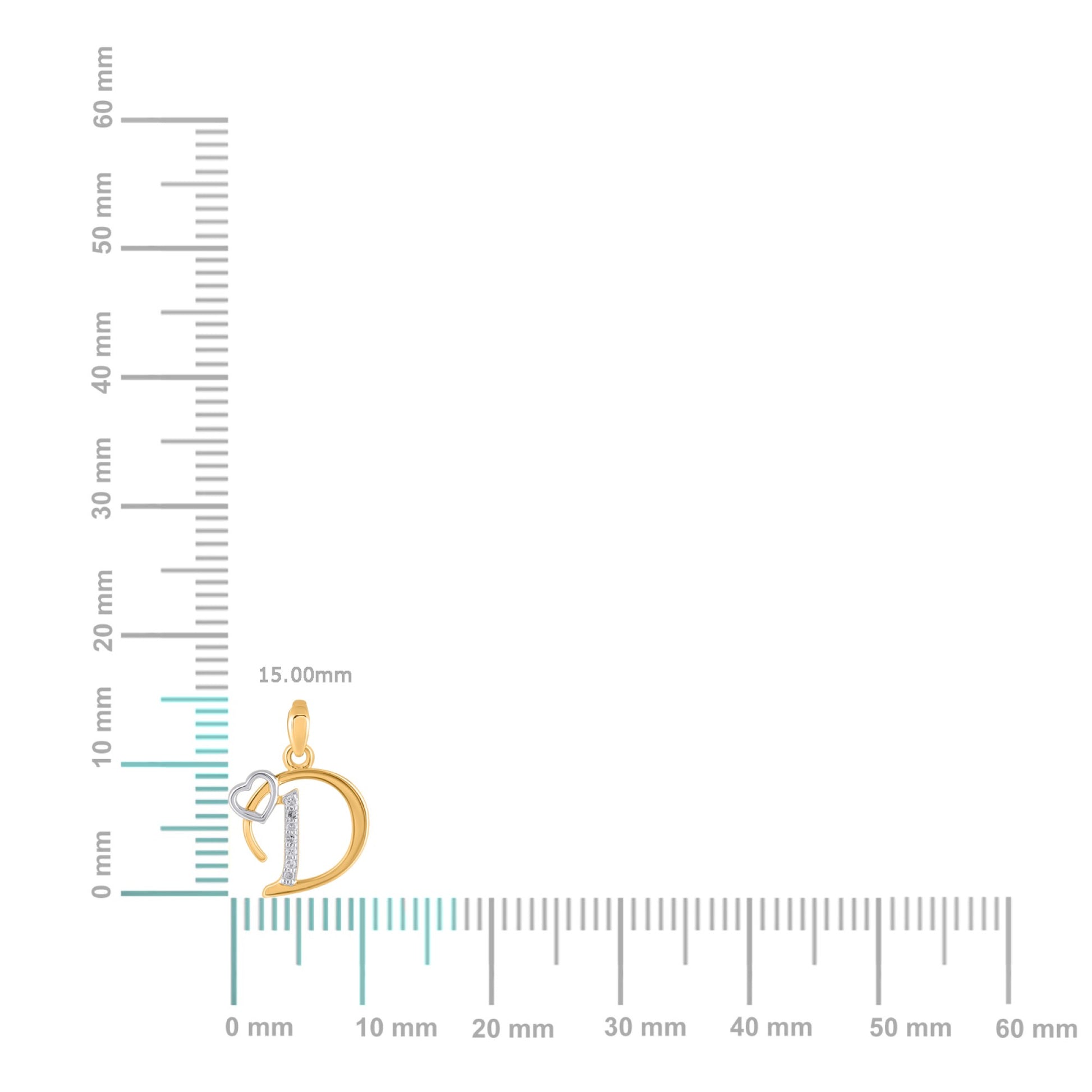 10K Yellow Gold Round Diamond D Letter Initial With Heart Pendant 1/10 Cttw