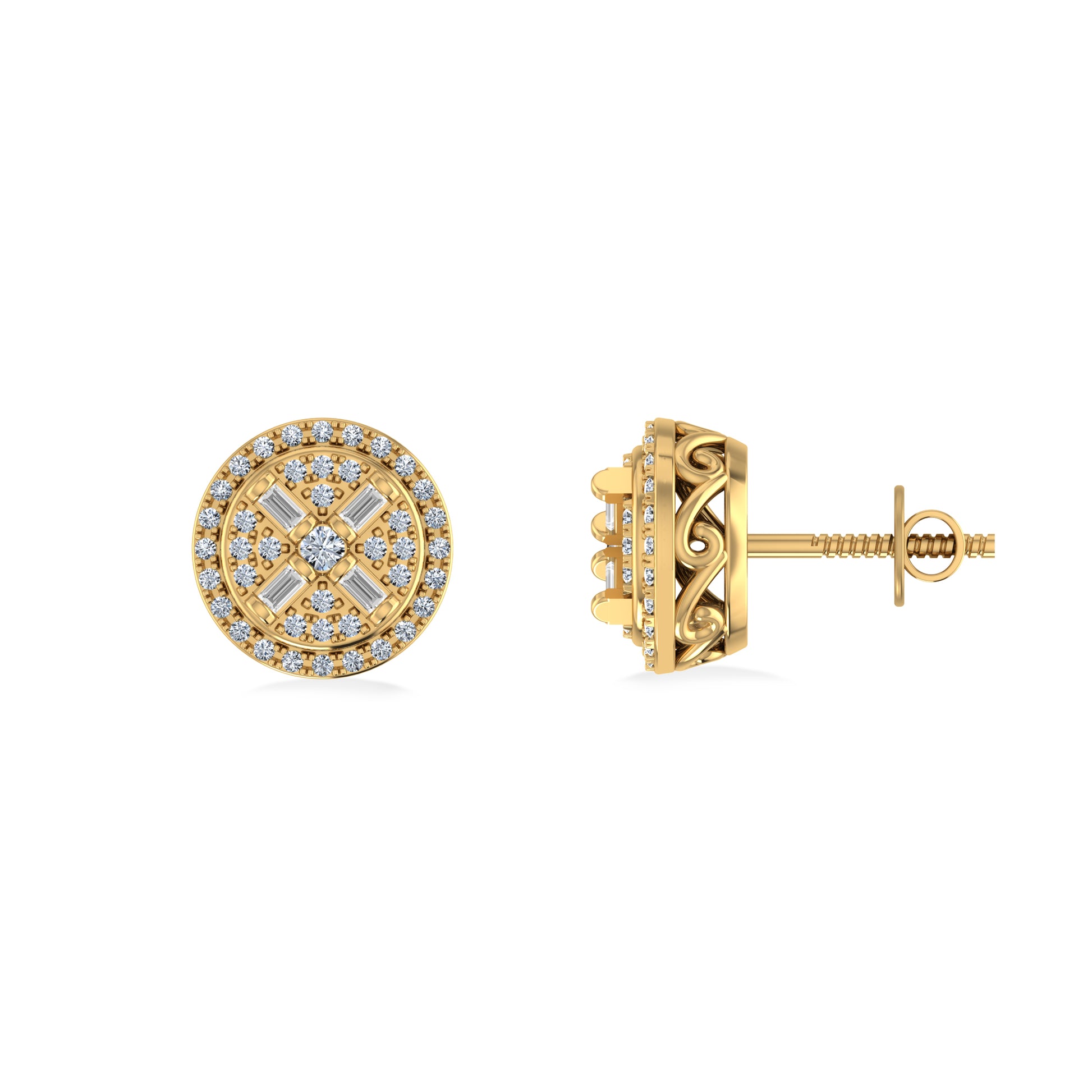 10K Yellow Gold Round Diamond Designer Mens Stud Earring 1/5 Cttw
