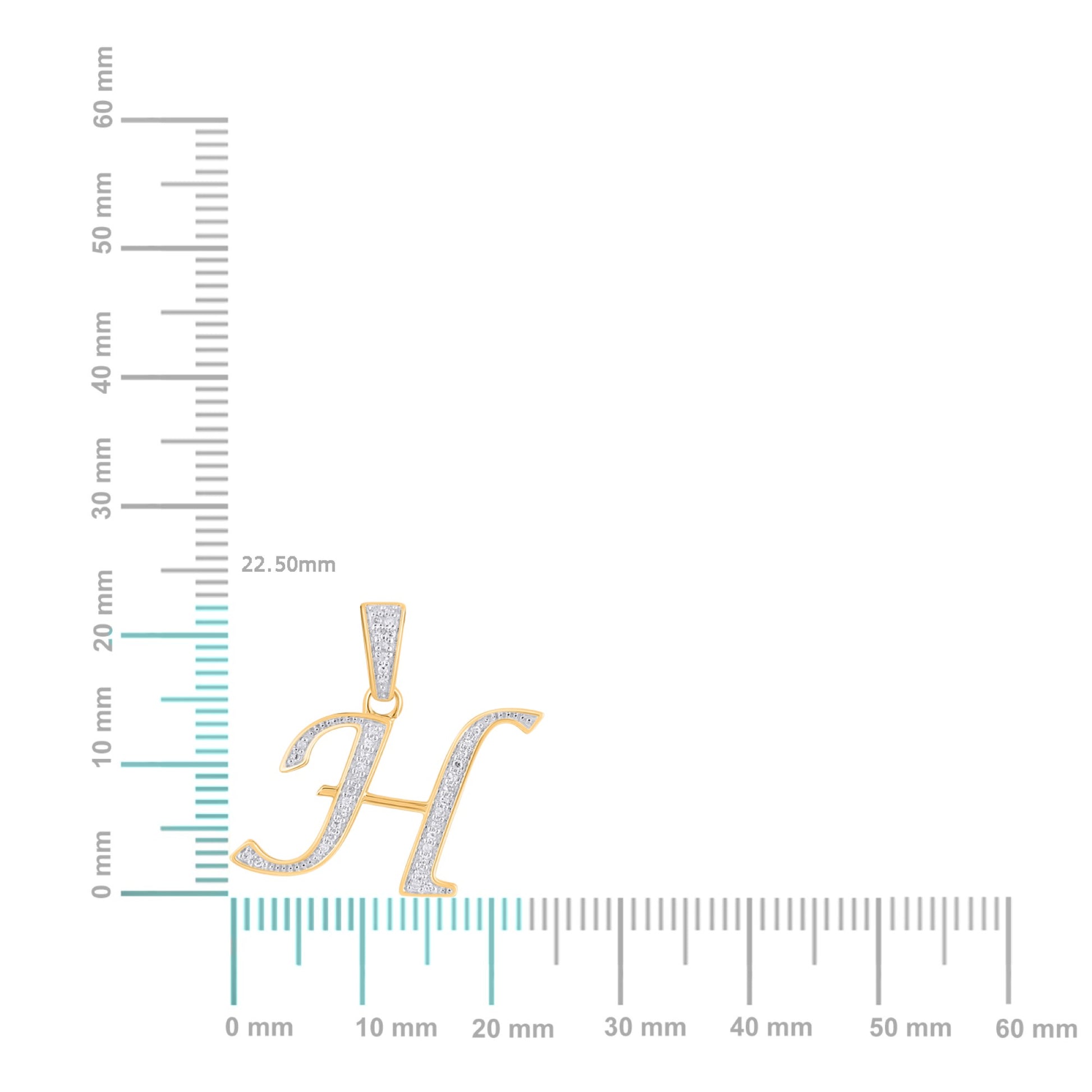 10K Yellow Gold Round Diamond H Letter Initial Pendant 1/10 Cttw