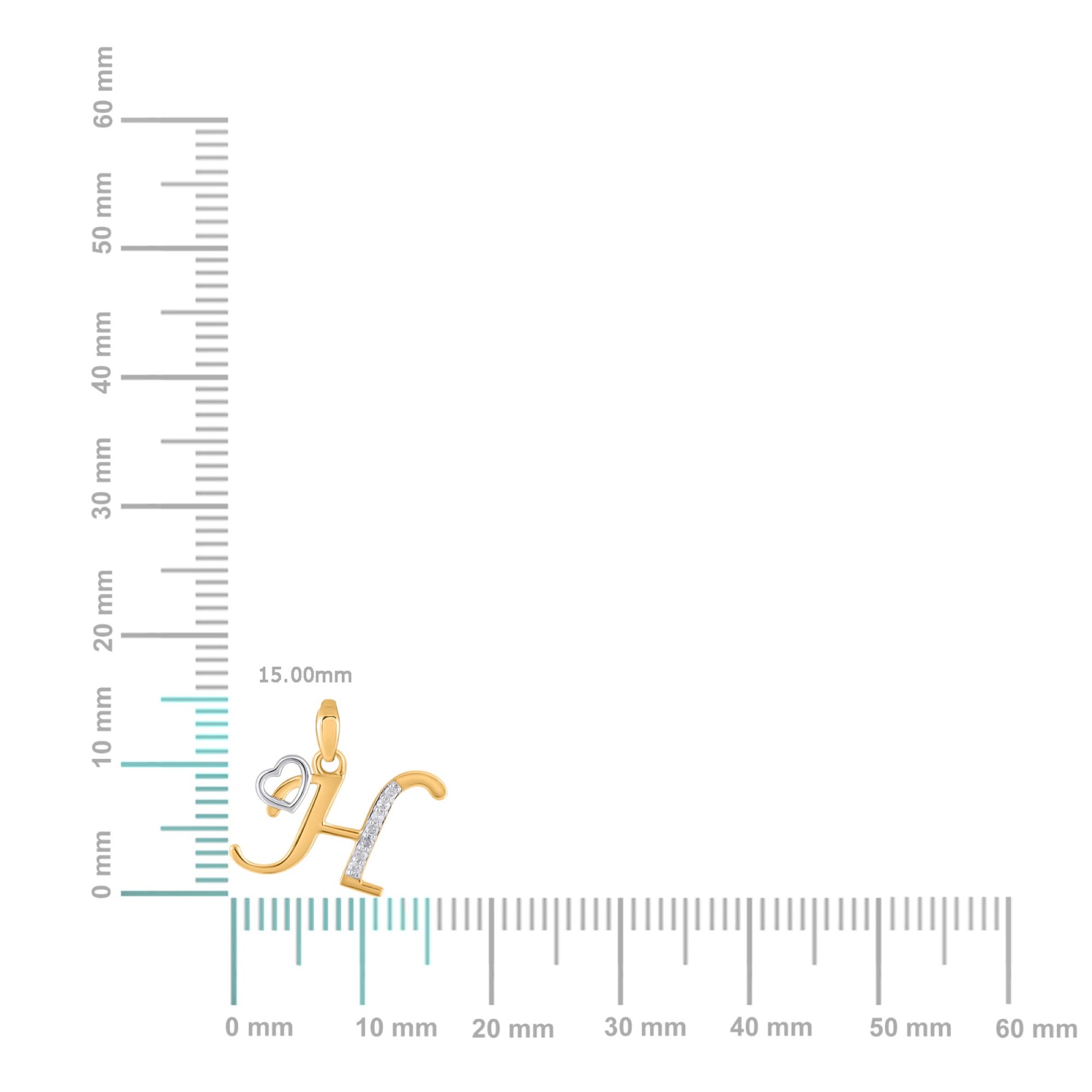 10K Yellow Gold Round Diamond H Letter Initial With Heart Pendant 1/10 Cttw