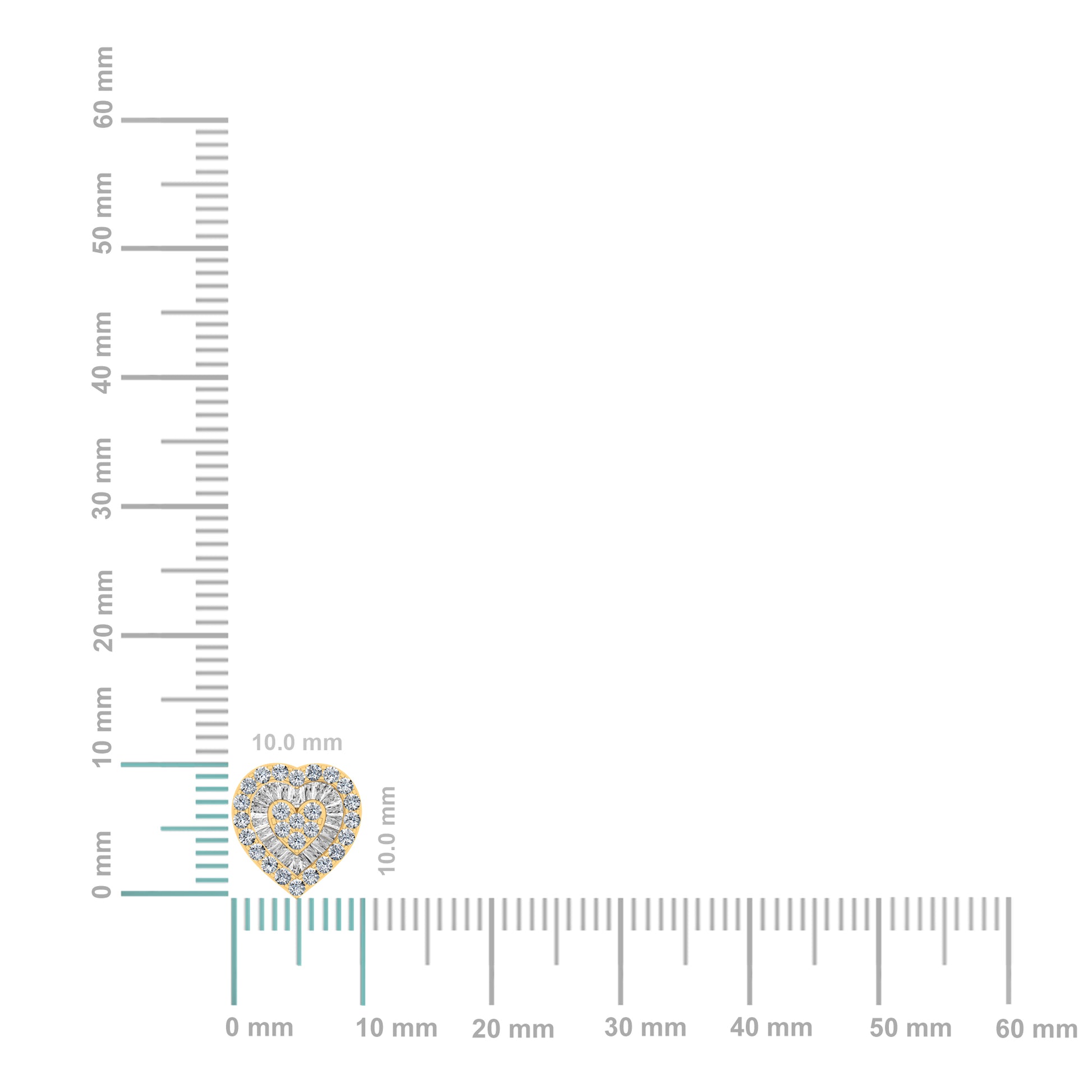 10K Yellow Gold Round Diamond Heart Shape Stud Earrings 1/2 Cttw