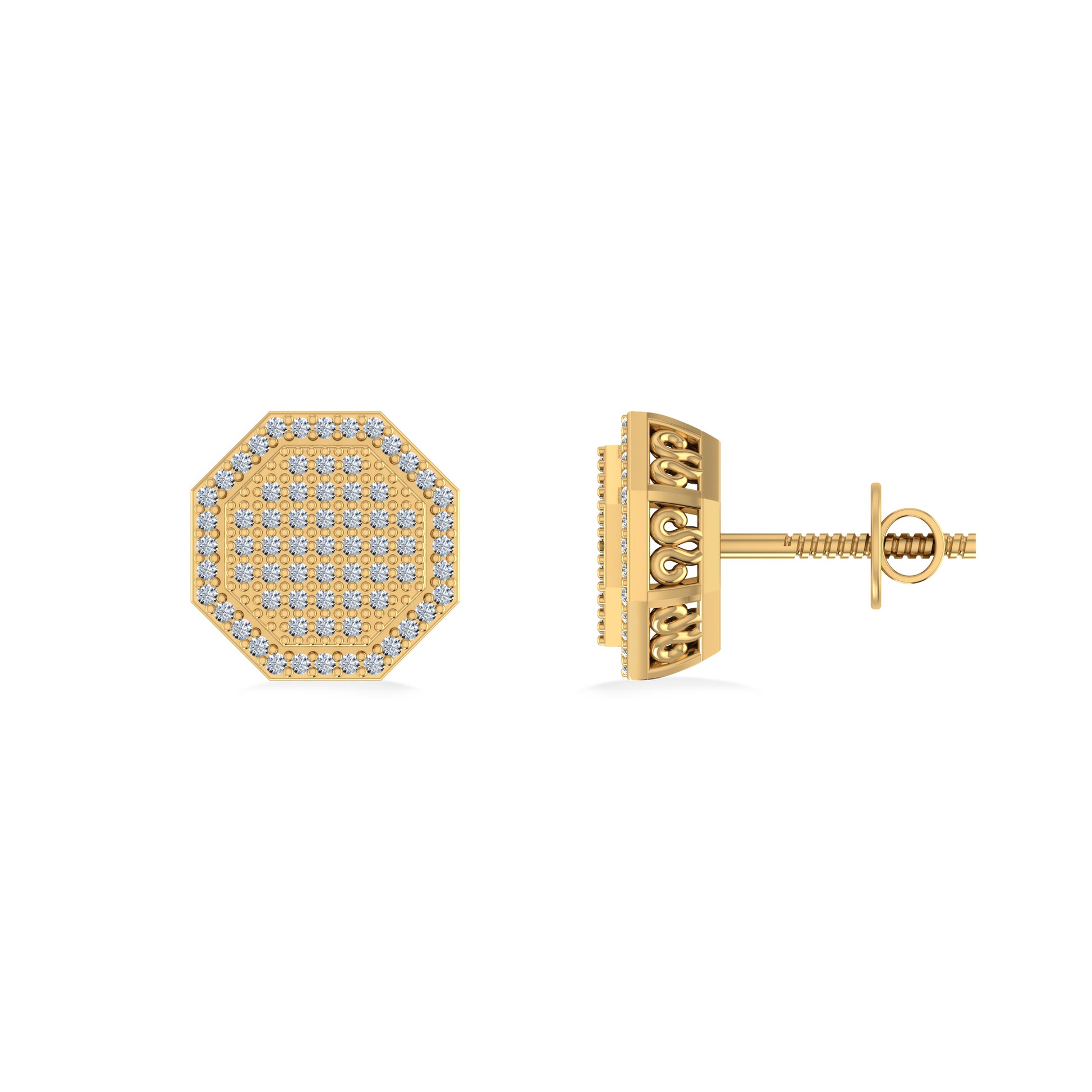 10K Yellow Gold Round Diamond Octagon Shape Designer Mens Stud Earring 1/4 Cttw