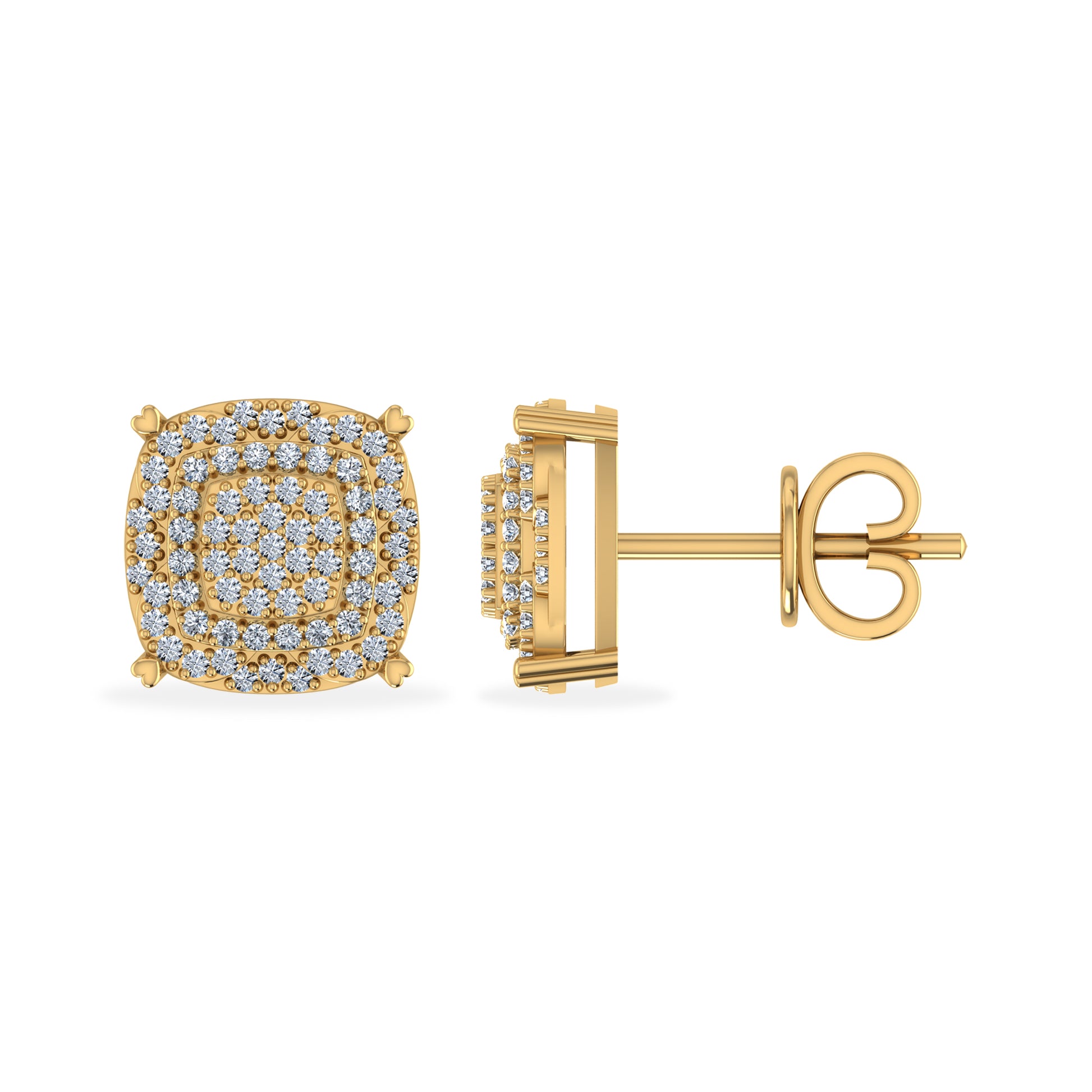 10K Yellow Gold Round Diamond Square Shape Designer Stud Earrings 1/3 Cttw