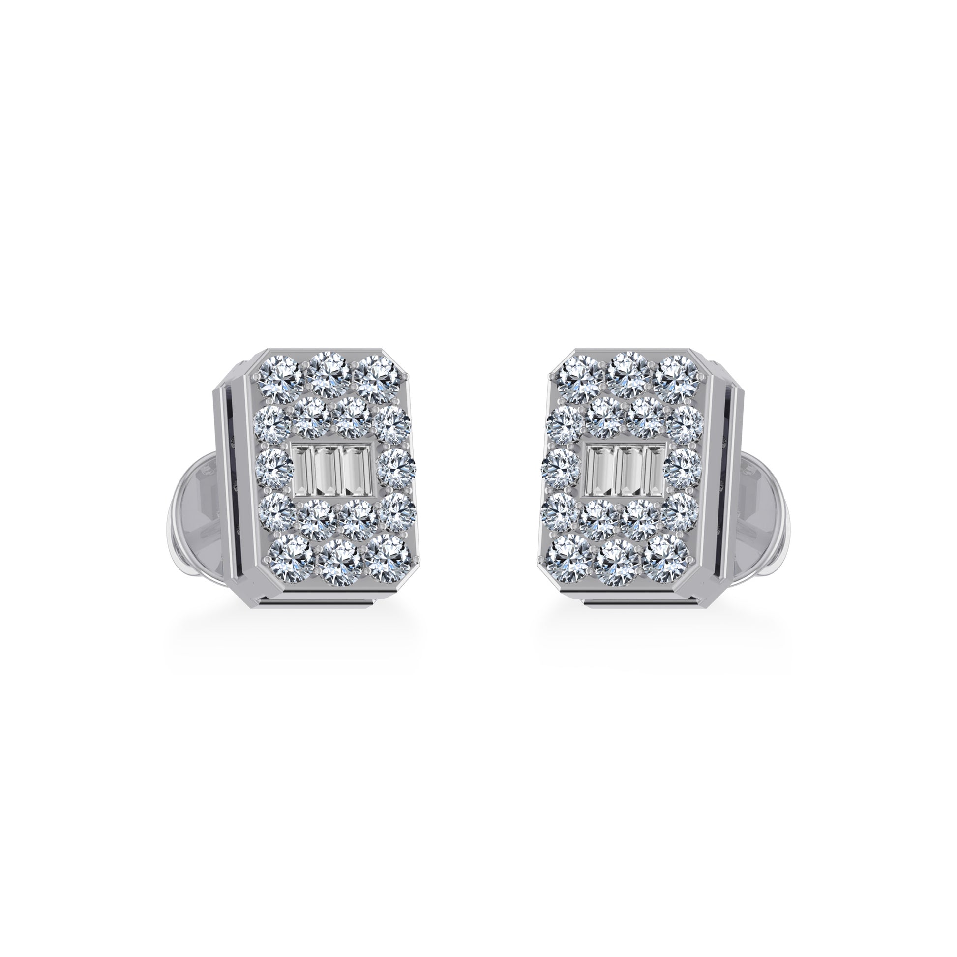 14K White Gold Baguette Diamond Emerald Shape Cluster Stud EarRing 1/5 Cttw