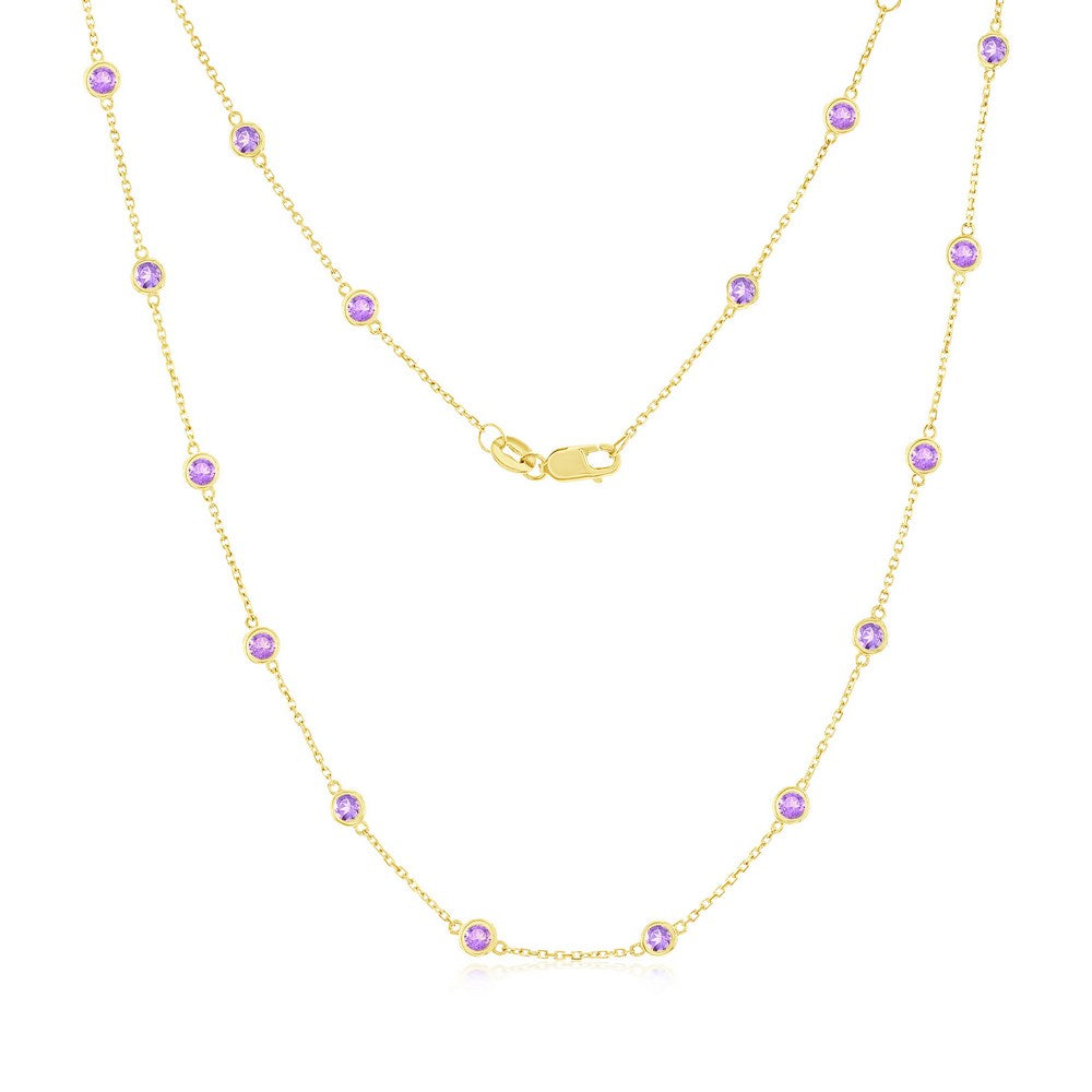 14K Yellow Gold, 2.18ct Gemstone Station Necklace - Amethyst