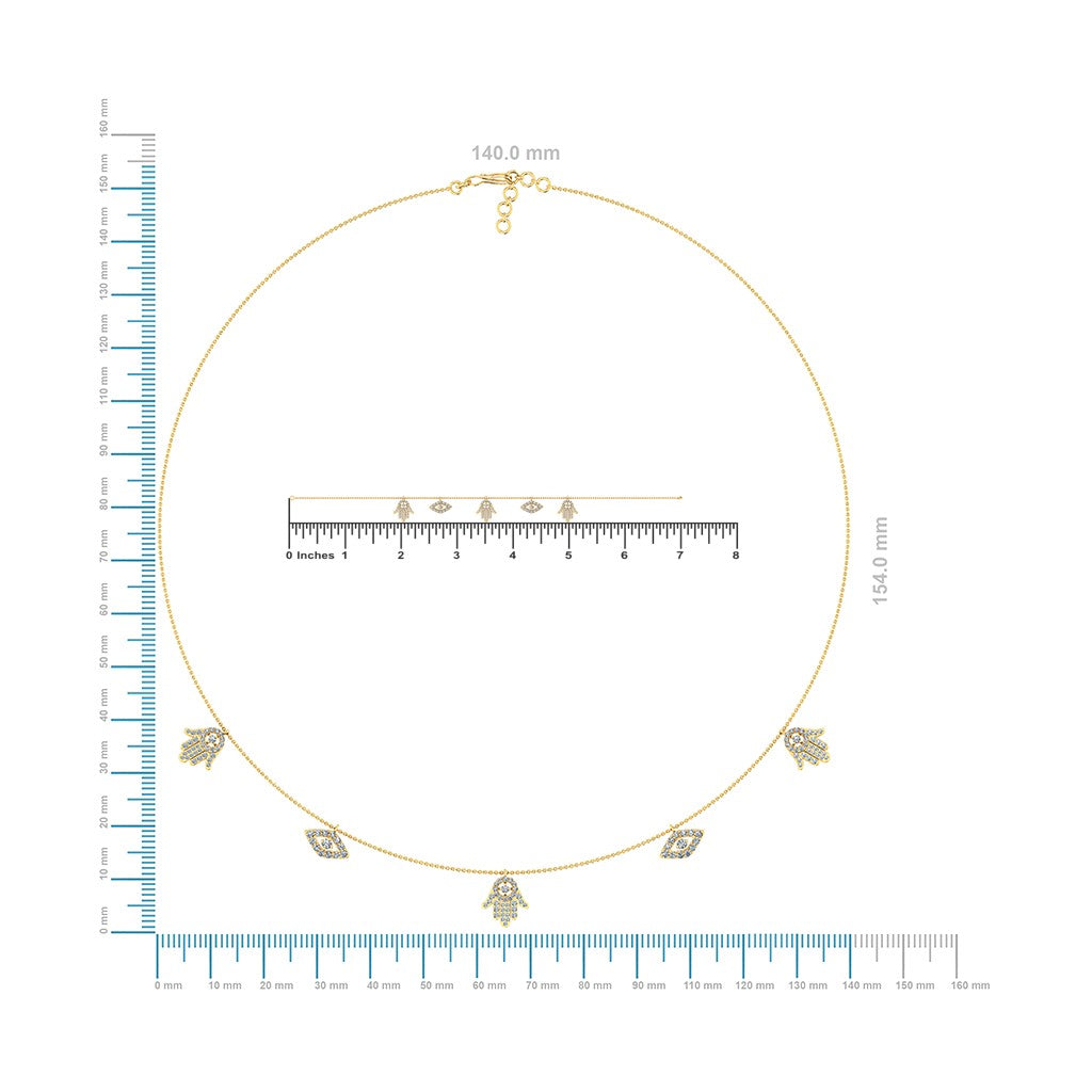 14K Yellow Gold Hamsa Hand Evil Eye Necklace Bracelet Set 1-1/4 Cttw