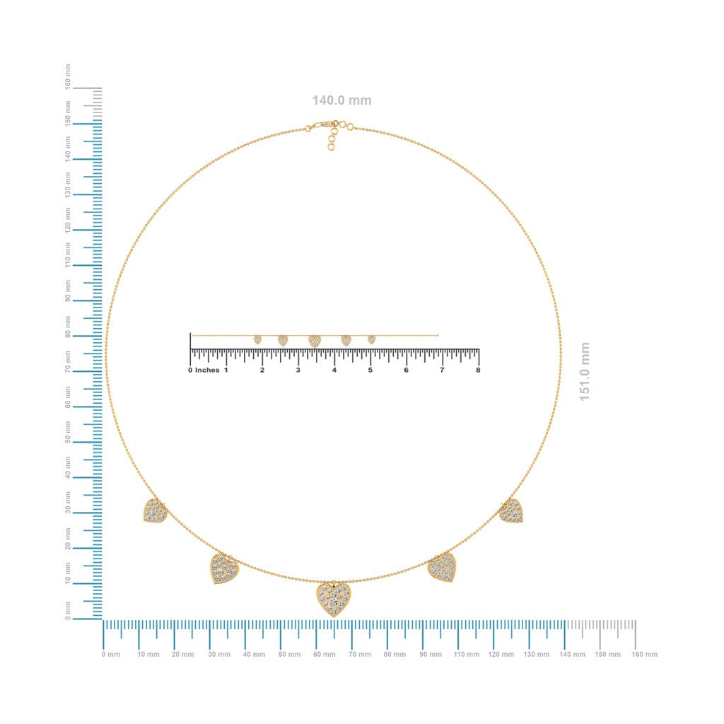 14K Yellow Gold Heart Necklace Bracelet Set 1-3/4 Cttw