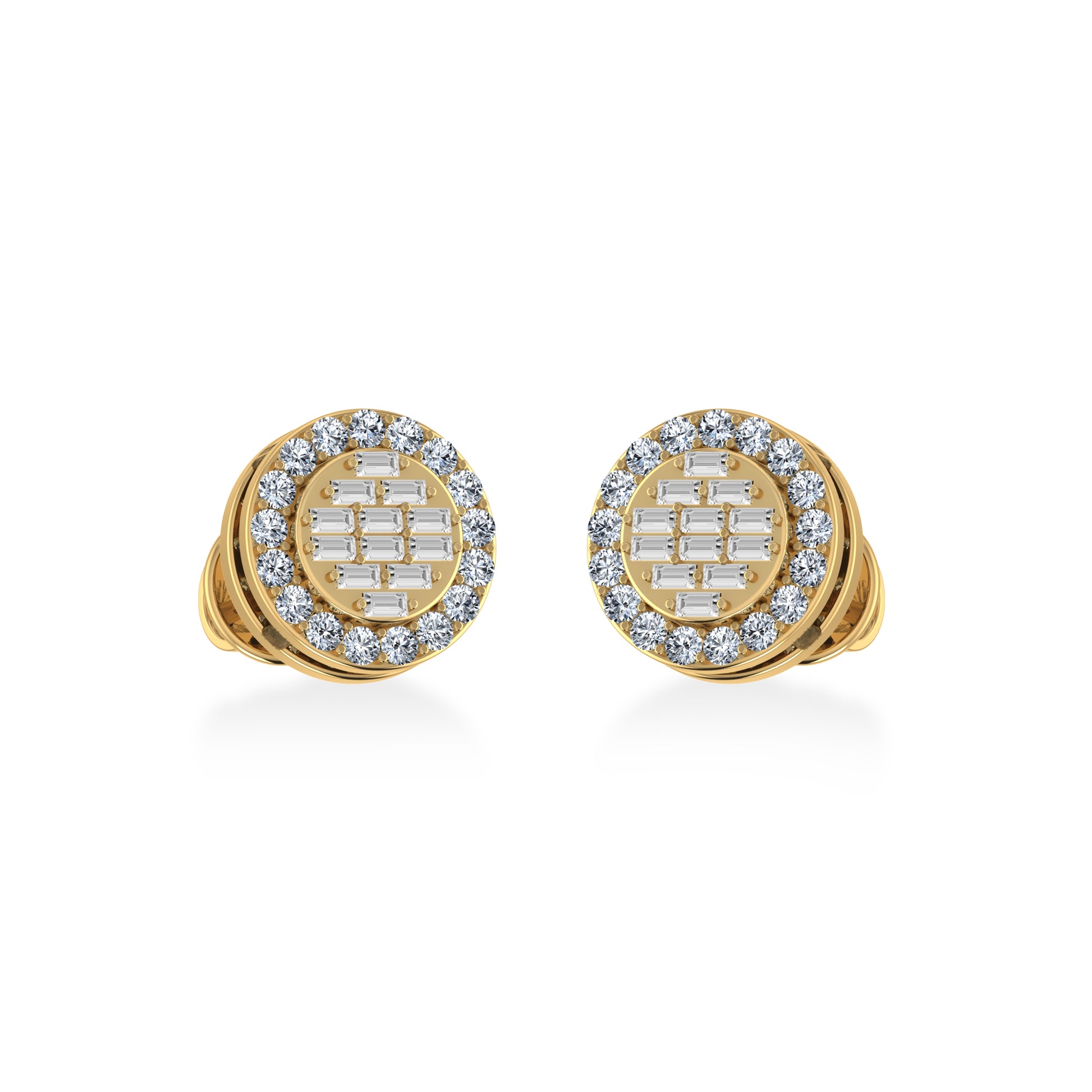 14K Yellow Gold Round Baguette Diamond Halo Stud Earrings 1/3 Cttw