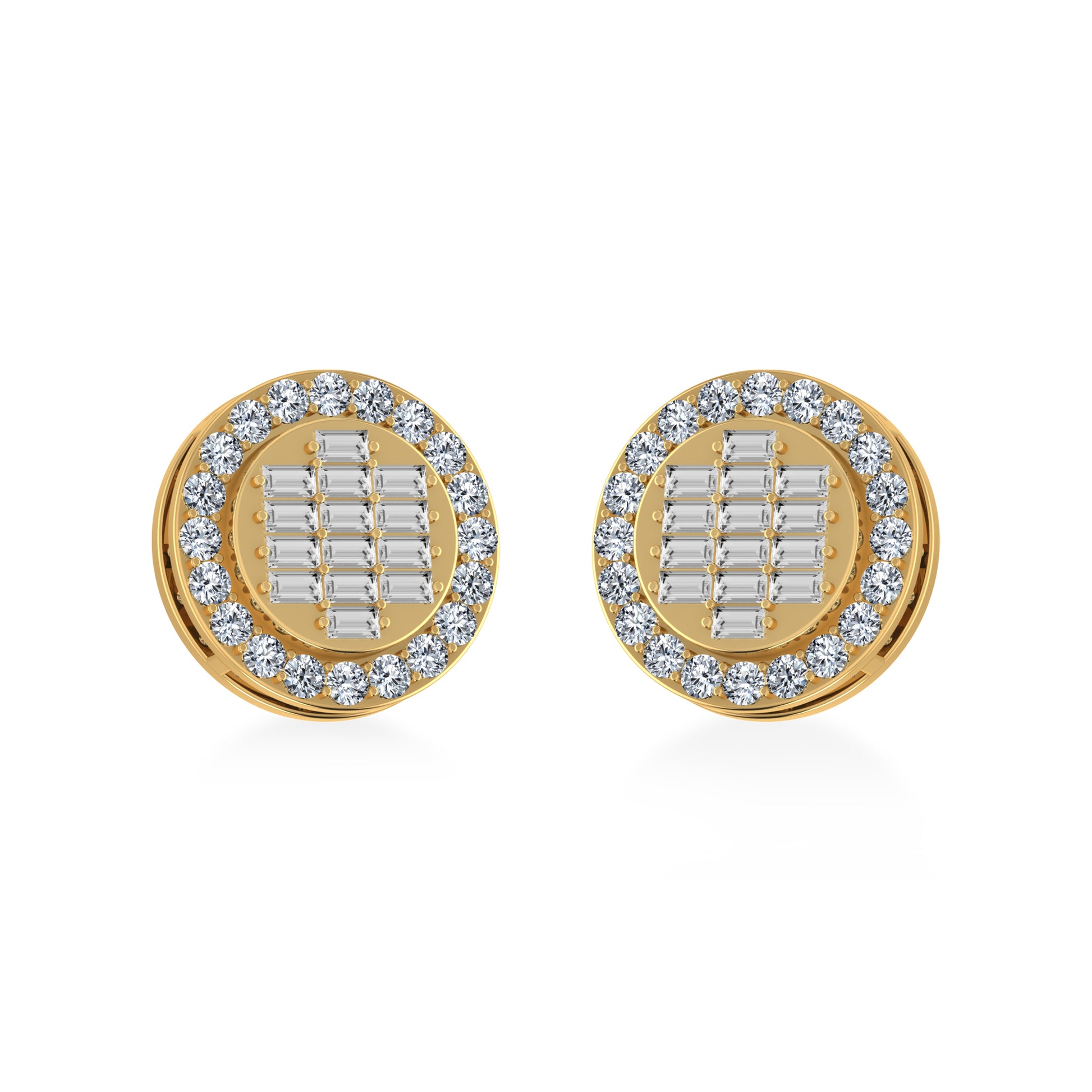 14K Yellow Gold Round Baguette Diamond Halo Stud Earrings 5/8 Cttw