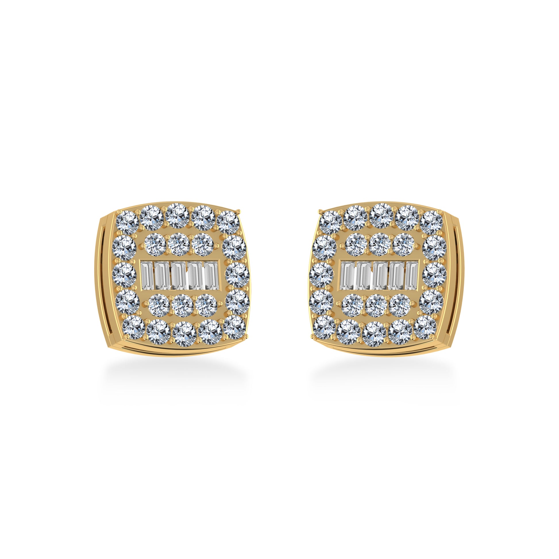 14K Yellow Gold Round Baguette Diamond Square Shape Cluster Stud EarRing 1/2 Cttw
