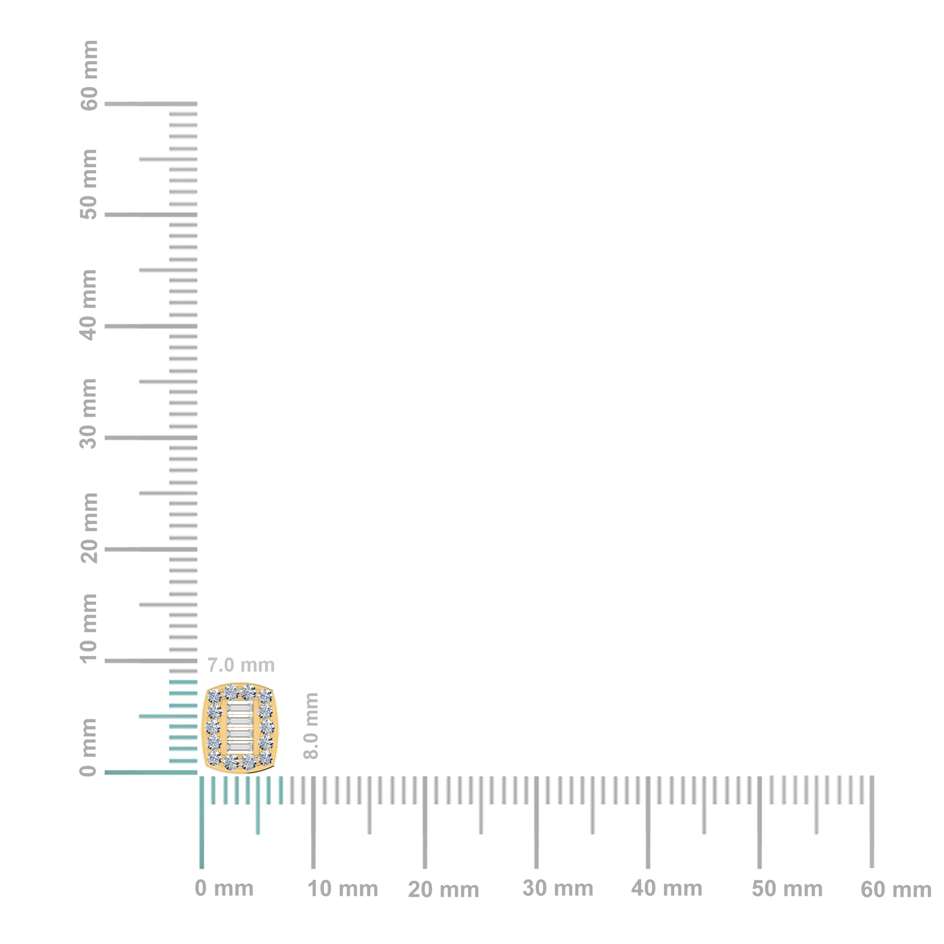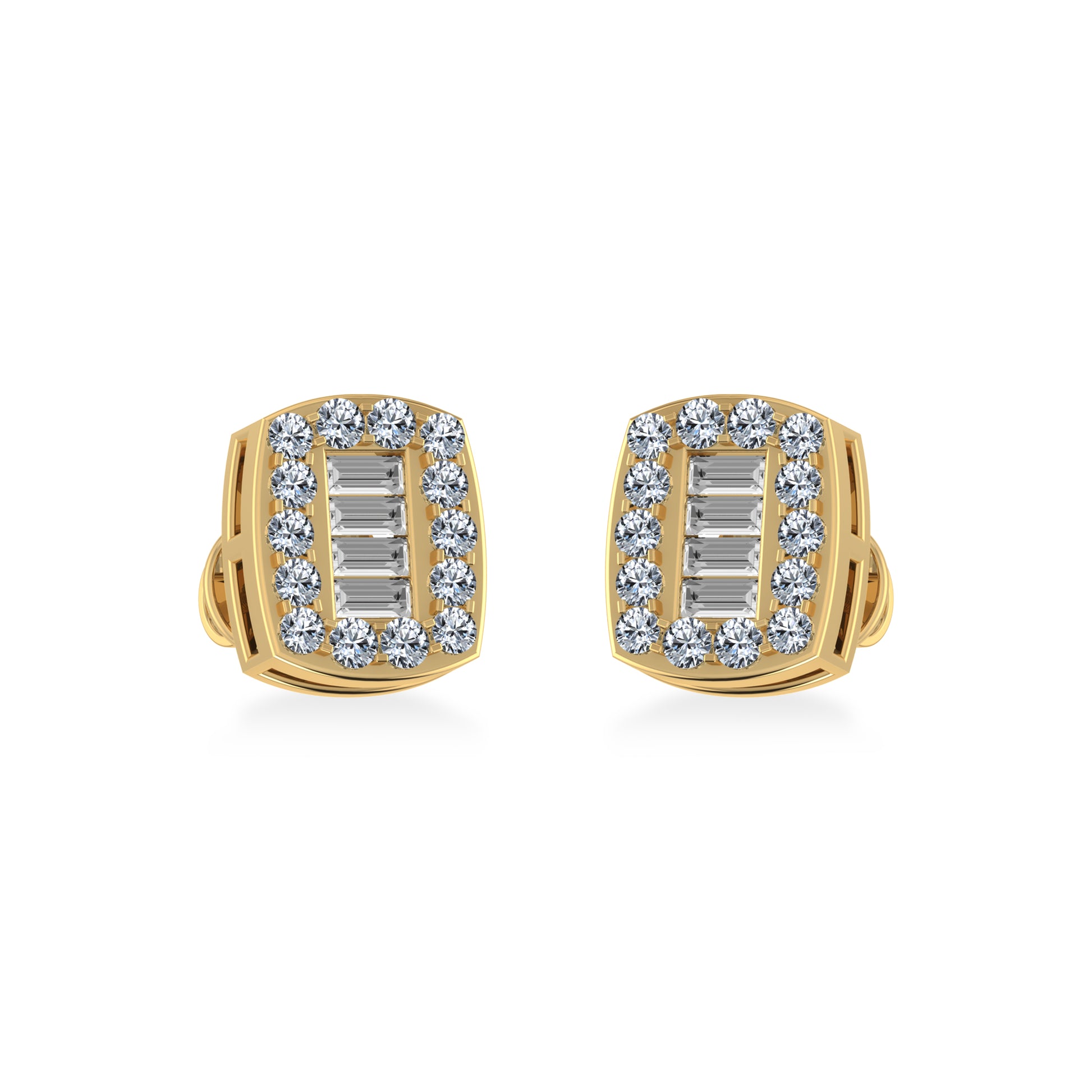 14K Yellow Gold Round Baguette Diamond Stud Earring 3/8 Cttw