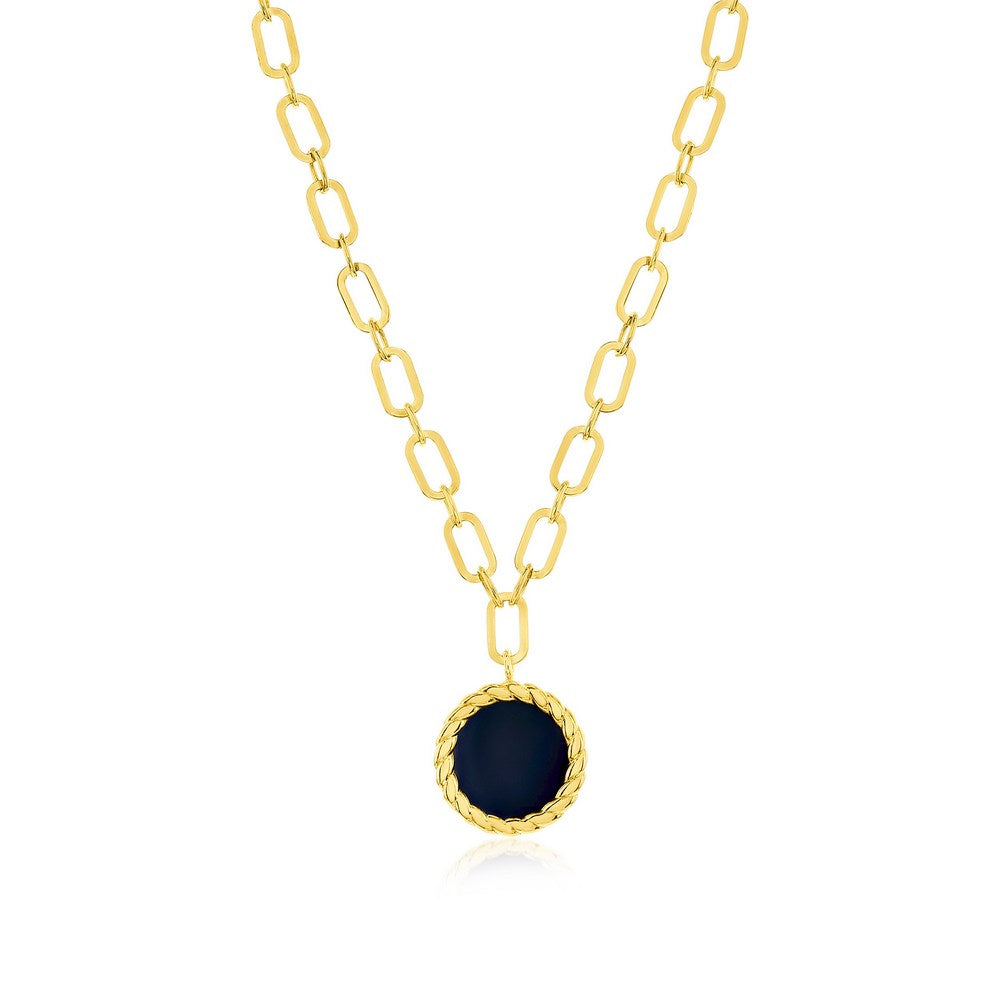 14K Yellow Gold, Round Onyx Paperclip Necklace