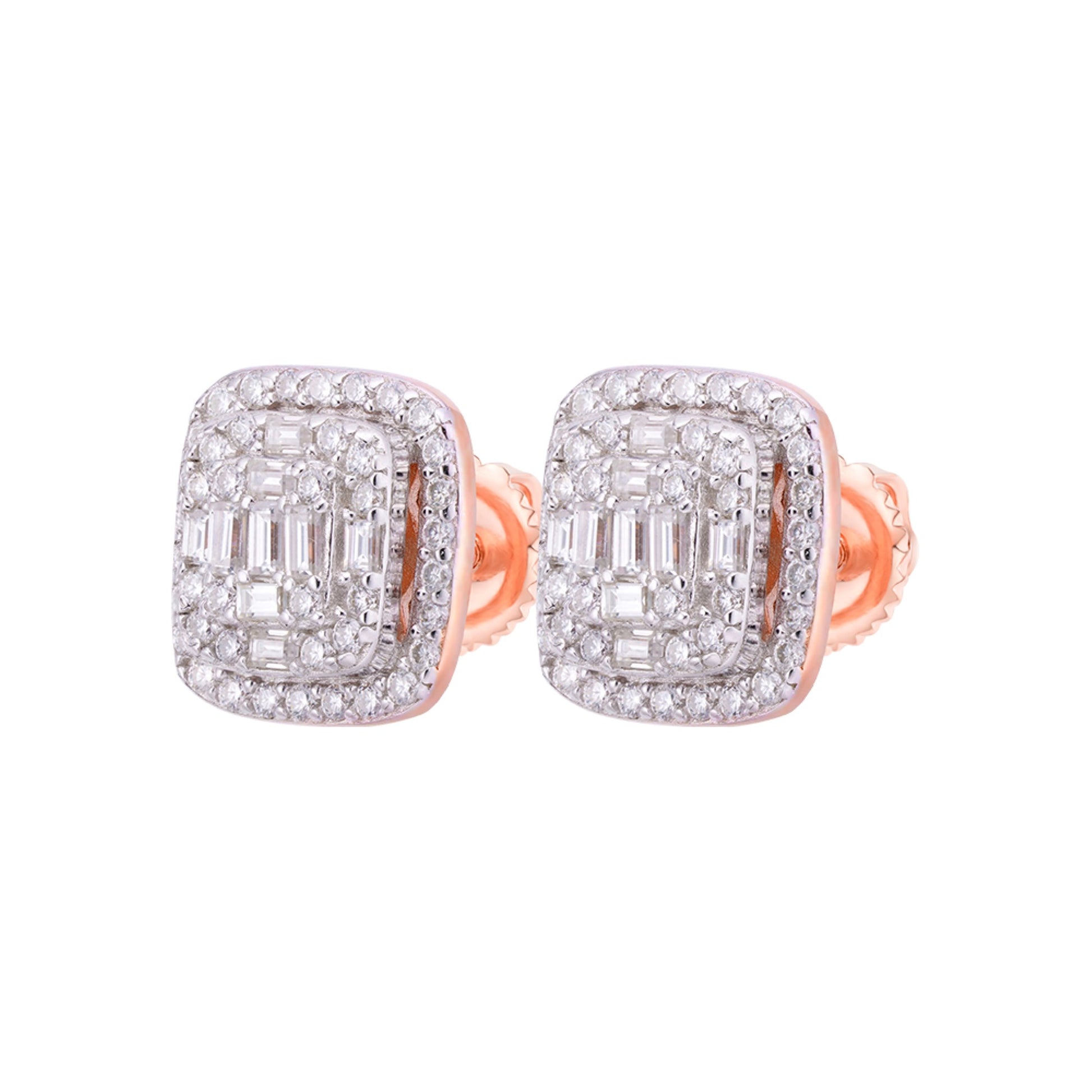 S.Silver Round Baguette Moissanite Halo Square Shape Designer Stud Earrings RP+PP 3/4 Cttw