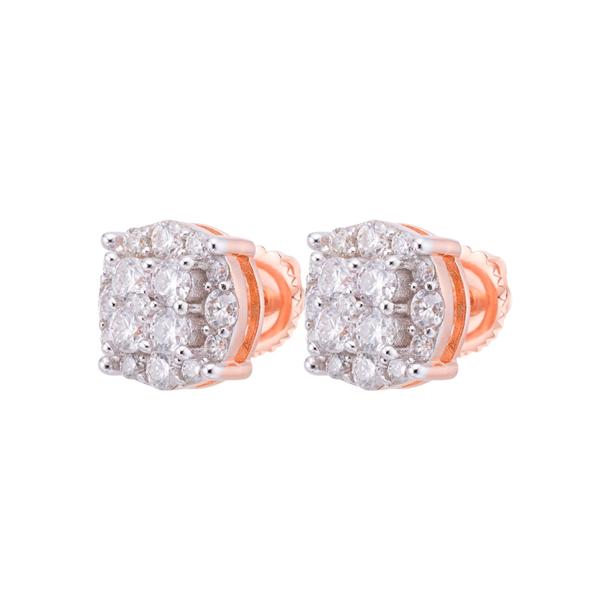 S.Silver Round Moissanite Designer Floral Stud Earrings RP+PP 1-1/8 Cttw