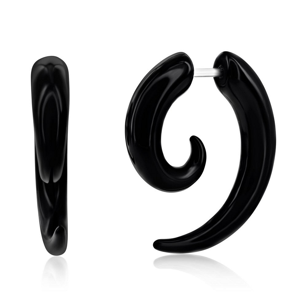 Stainless Steel Black PVC Horn Design Earring