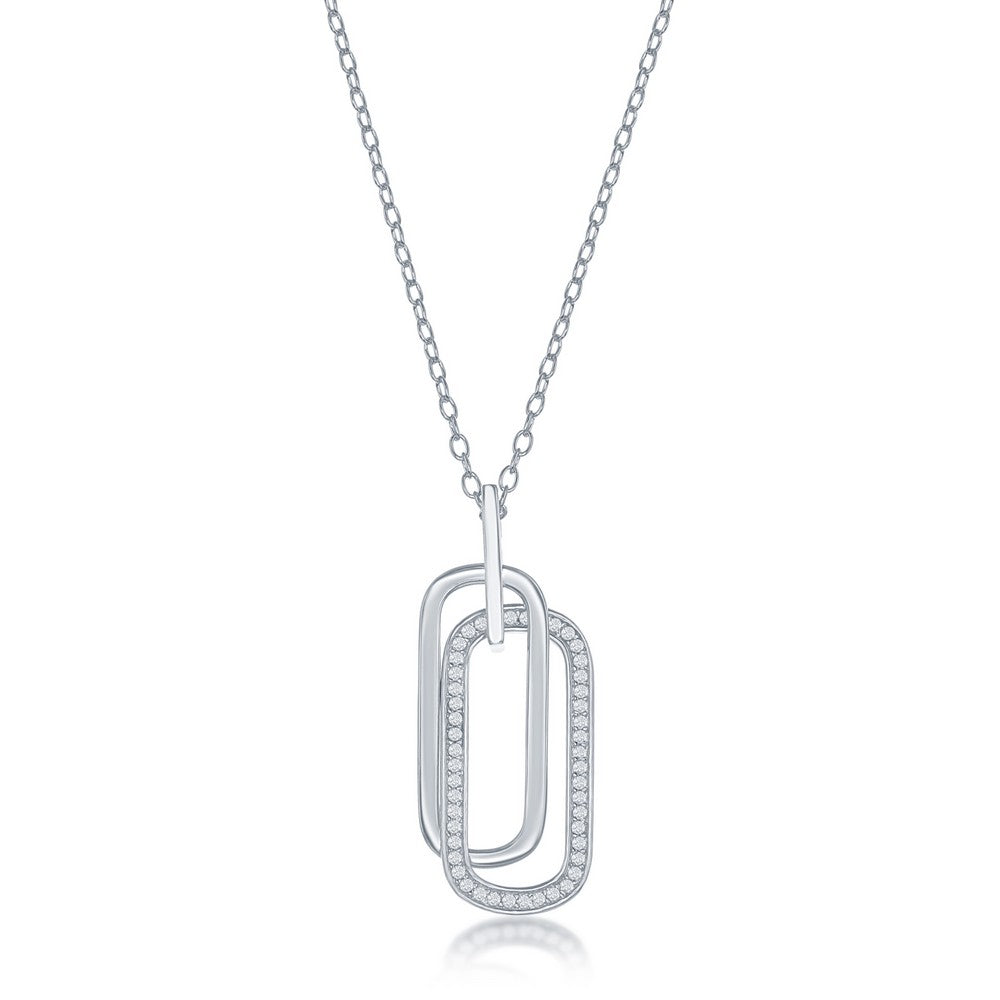 Sterling Silver Double Oval CZ Necklace