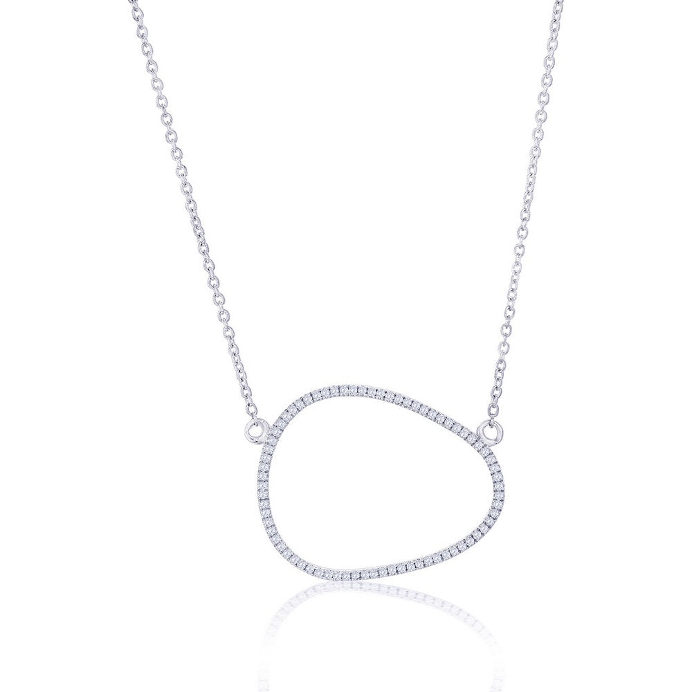 Sterling Silver, Irregular Shape Diamond Necklace - (72 Stones)