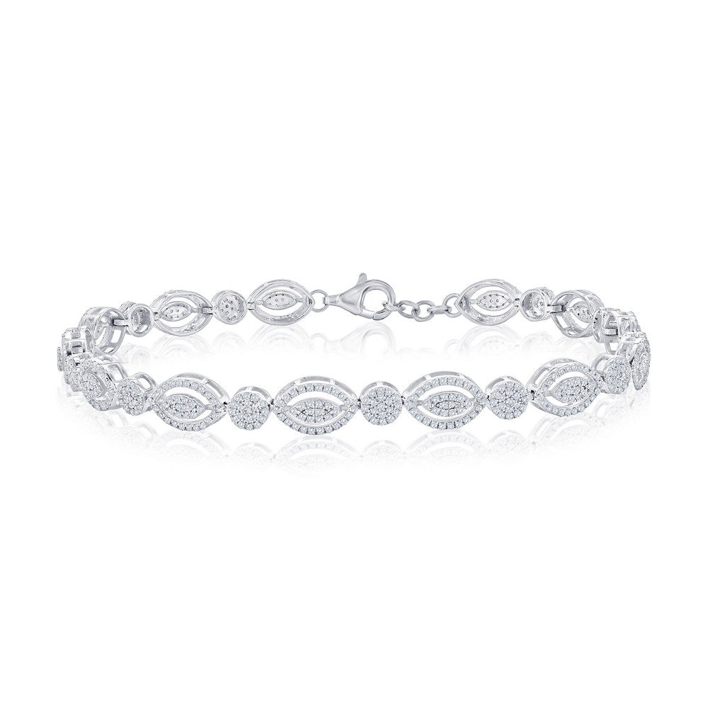Sterling Silver, Marquise & Round Diamond Bracelet - (723 Stones)