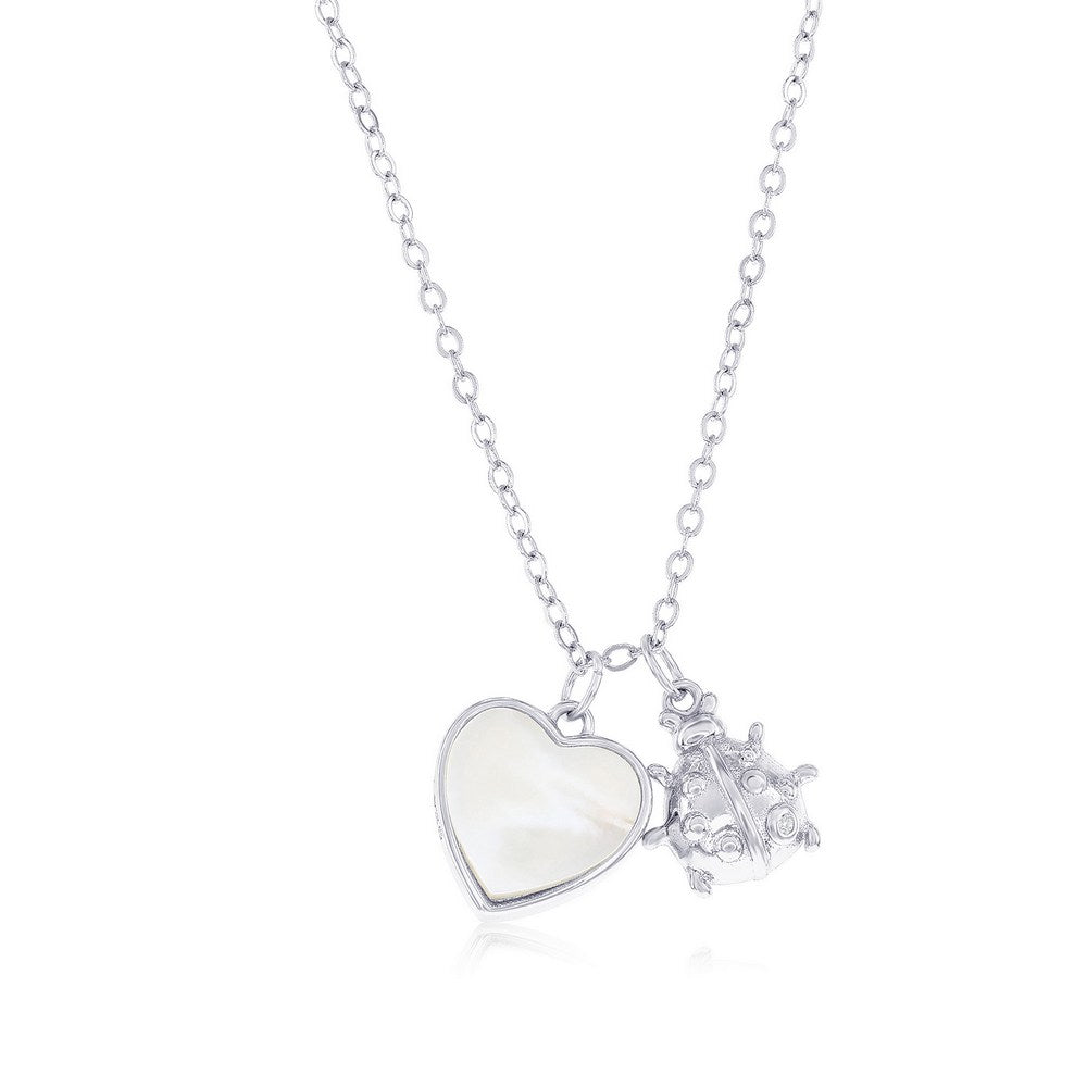 Sterling Silver MOP Heart & Ladybug CZ Necklace