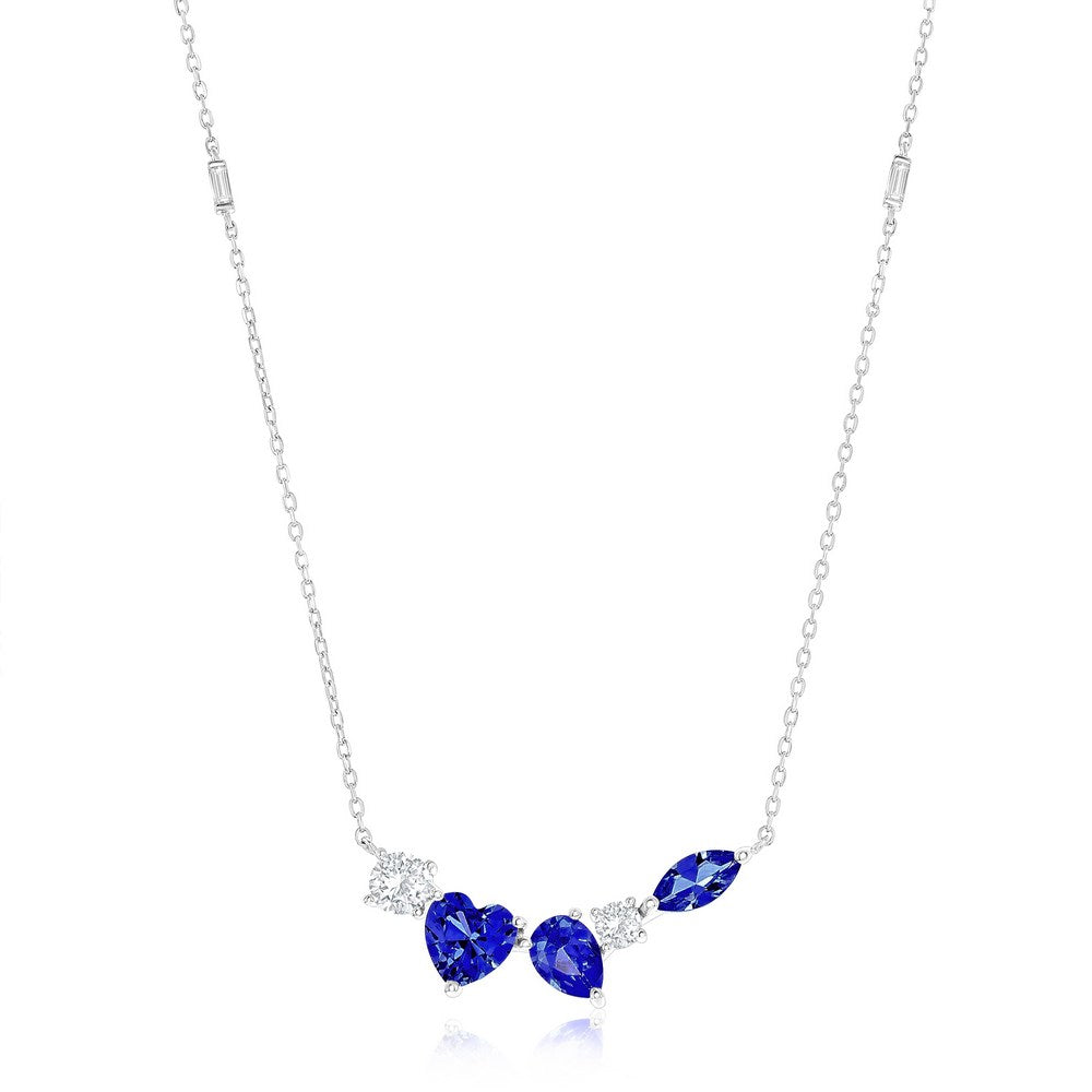 Sterling Silver Multi-Shaped CZ Bar Necklace - Sapphire