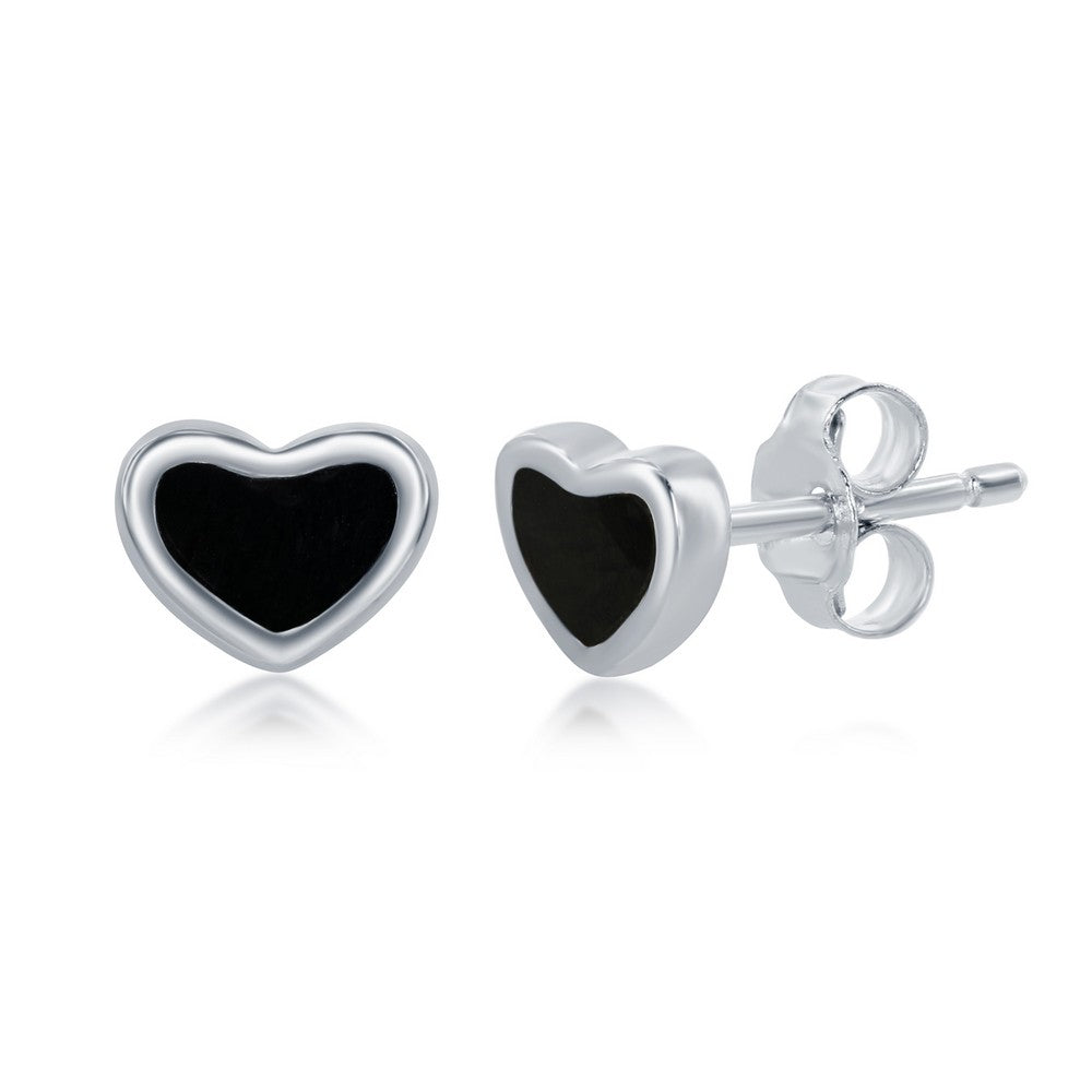 Sterling Silver Onyx Heart Pendant and Earrings Set