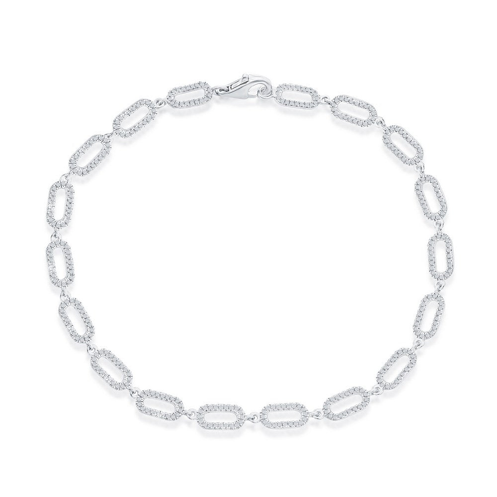 Sterling Silver, Open Rectangle Diamond Bracelet - (340 Stones)