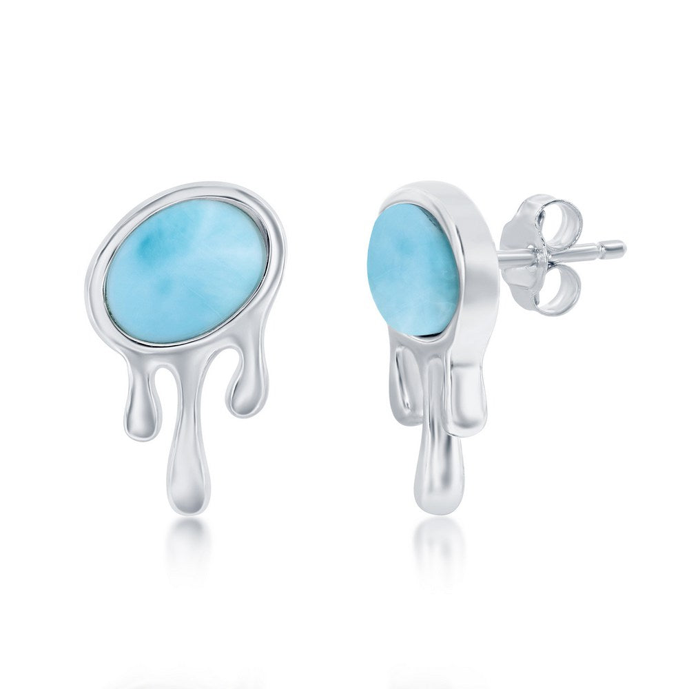 Sterling Silver Oval Larimar, Dripping Design Stud Earrings