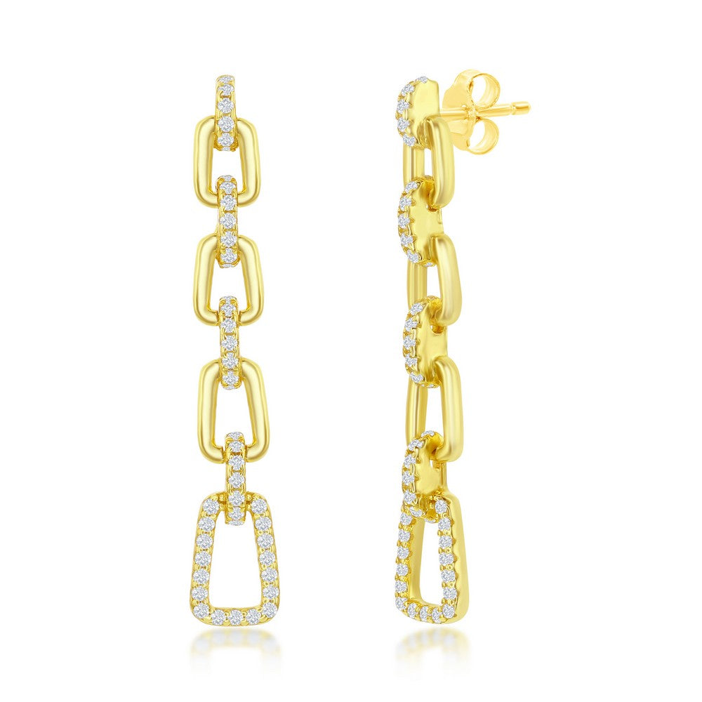 Sterling Silver Paperclip CZ Long Earrings - Gold Plated