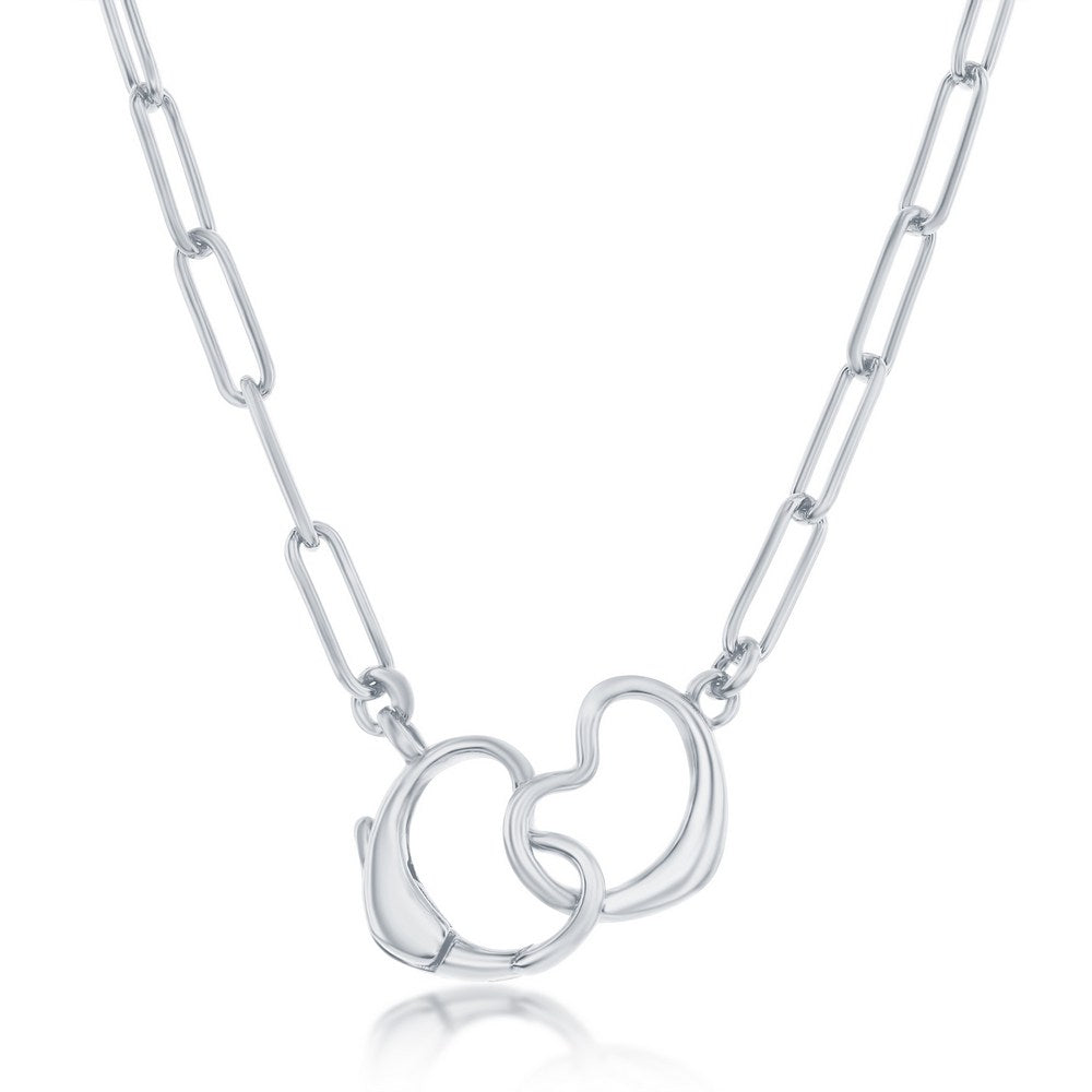 Sterling Silver Paperclip, Heart Clasp Necklace