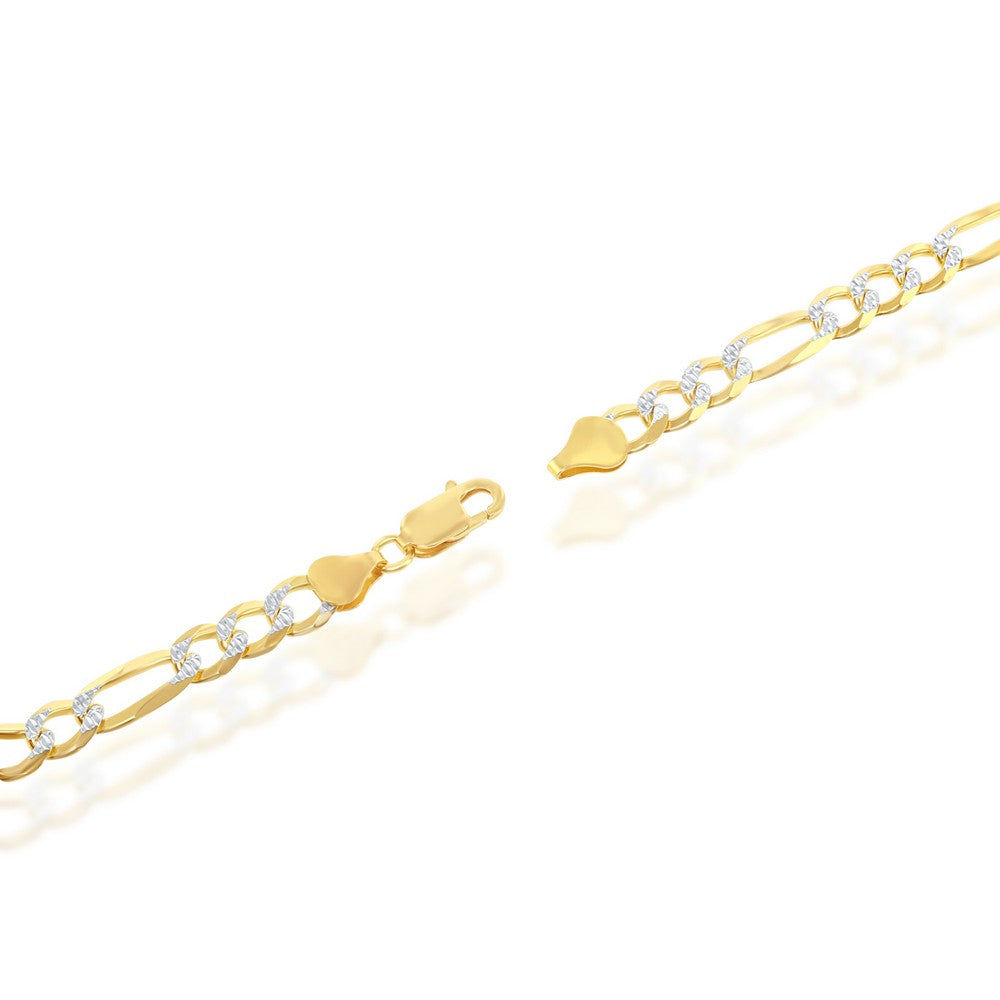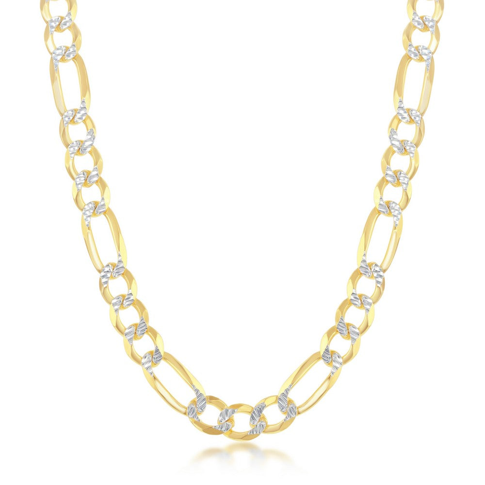 Sterling Silver, Pave 7mm Figaro Chain (180 Gauge) - Gold Plated