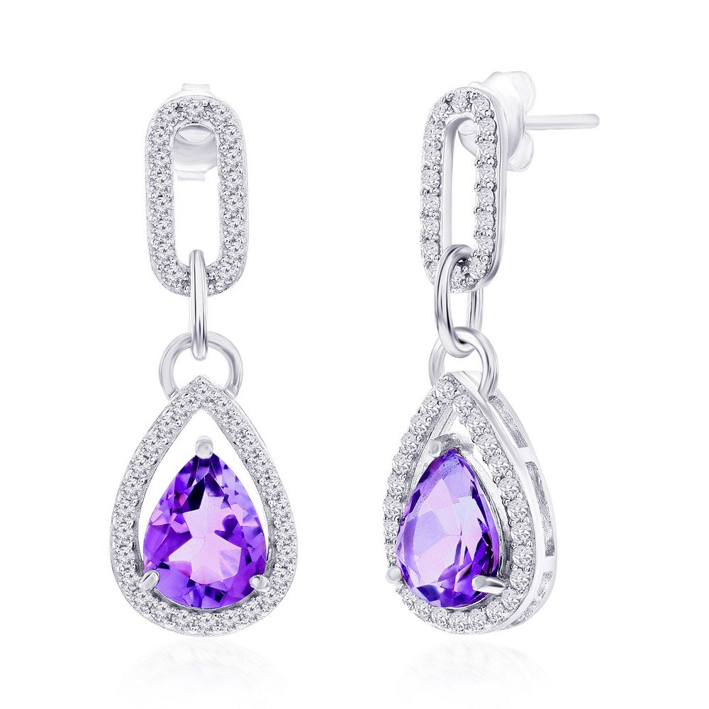 Sterling Silver, Pearshaped 7X9 Amethyst & White Topaz Paperclip Earrings
