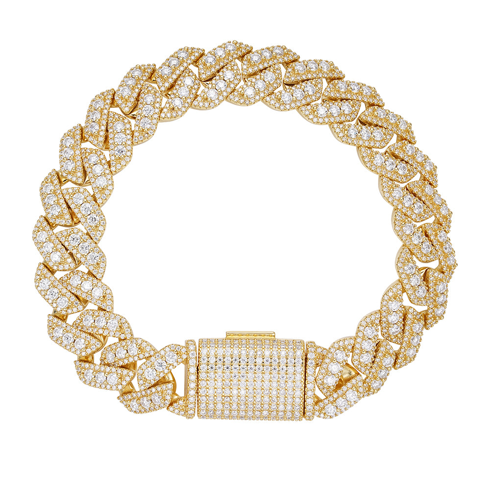 Sterling Silver Round Big Stone in Center Surrounded with Small Stones 14mm Moissanite Cuban Chain 8.5 Inch Bracelet GP 12-3/4 Cttw