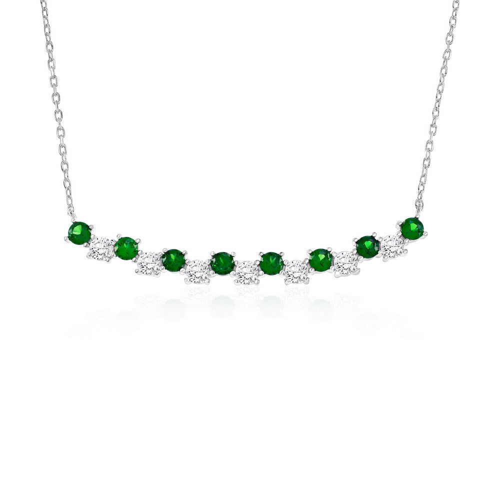 Sterling Silver Round CZ Curved Bar Necklace - Emerald